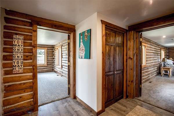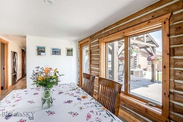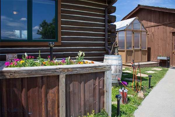 107 Antelope Meadows is a well-cared-for log home situated on 2.88 acres on a quiet street above Ennis, Montana, offering expansive views of the Madison Range and distant Ennis Lake. Over the years, the property has received consistent maintenance and thoughtful upgrades-including a new roof, updated windows, remodeled bathrooms, new flooring, a fully updated kitchen, fresh paint, and exterior upkeep. This 4-bedroom, 2-bathroom home spans approximately 1,994 square feet and blends the warmth of a log cabin with bright, sunny interior spaces. The large primary suite opens directly to the deck, includes a walk-in closet, and provides a comfortable retreat. Enjoy both covered and open decks throughout the day-whether you prefer sun or shade. The detached two-car garage features an electric-heated workshop with concrete floors and two additional storage areas. The home also offers central AC, new furnace in 2025, underground sprinklers, a greenhouse, and mature landscaping that enhances the sense of permanence and personality. Ideal for those with animals, the property is partially fenced with secure dog space and fenced pasture. Chickens are allowed. A leased 1,000-gallon above-ground propane tank (usage is approx. 1000 gallons/year) supports the home. If you're seeking a single-level home with character, in a special location with mild covenants-just minutes from downtown Ennis and K-12 schools-this property deserves consideration. No active HOA, but owner pays a voluntary fee of $200/year for road maintenance.