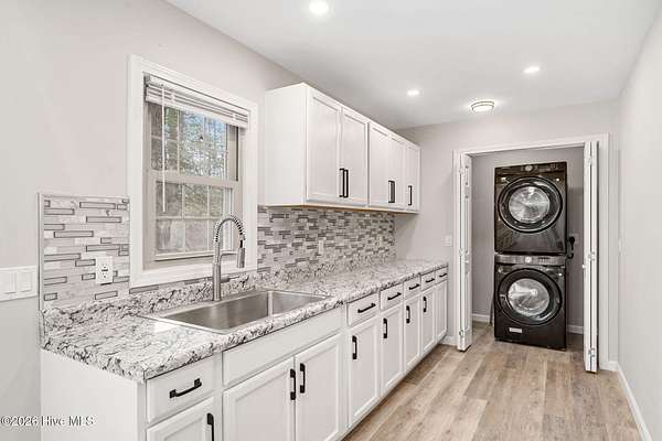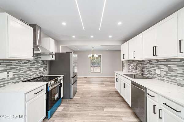 107 Azalea Trail | Salemburg, NC Completely rebuilt from the studs out, this traditional brick home offers the rare combination of classic curb appeal and essentially new construction inside. Situated at the end of a quiet road on just over 2 private acres, this property provides space, privacy, and turnkey quality. This was not a cosmetic update - nearly every major system and finish has been replaced or upgraded. Improvements include a brand-new roof, upgraded electrical and plumbing, all-new flooring throughout, and fully renovated kitchen and bathrooms with modern finishes and thoughtful design. The kitchen features a second sink and dedicated coffee bar area, offering added functionality and convenience. Bathrooms include sleek LED-lit mirrors for a clean, contemporary feel. All new appliances convey, including refrigerator, range, dishwasher, washer, and dryer. Carefully planned lighting design enhances both everyday living and entertaining. The brick exterior maintains timeless character, while the interior delivers modern efficiency and style. Enjoy outdoor living with a spacious front porch and generous back deck overlooking your private acreage. Public utilities and trash pickup add everyday convenience. Located just minutes from Clinton with easy access to I-40, this home offers peaceful living without sacrificing accessibility. Completely reimagined from top to bottom, 107 Azalea Trail is truly move-in ready and waiting for you to make it HOME!