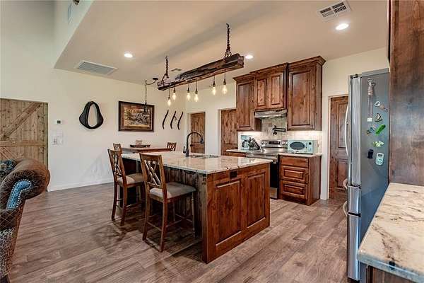 You will want to make sure you look at ALL pictures! Stunning multi-use horse property offering residential comfort, income potential, and equestrian functionality. This property features a 3 bedroom, 2 bath home, large shop, and extensive improvements. The home was renovated approximately two years ago and includes knotty alder cabinets in the kitchen, bathrooms, and laundry. Ceramic wood-look tile runs throughout with carpet in bedrooms. Additional features include double pane fold-in windows with transferable lifetime warranty, wood burning stove, updated HVAC approximately four years old, and water heater replaced approximately two years ago. Exterior includes hardwired security cameras and antenna system connected throughout. Property includes a 30x60 covered RV building with full hookups. Multiple RV hookups are located throughout. Equestrian improvements include full perimeter and cross fencing with pipe top rail and no-climb wire. Horse barn five covered stalls with runs, feed room, lighting. Property also includes turnout areas, holding pen, frost free water. Indoor dog kennel with wash station and on demand hot water, two gated entrances, divided yard spaces, and individual water shutoff valves to each structure. Large shop offers multiple roll up doors and ample workspace. Ideal for horse enthusiasts, multi-use living, multi-generational living.
