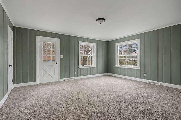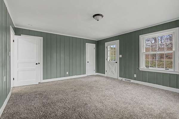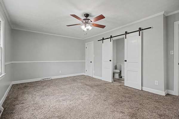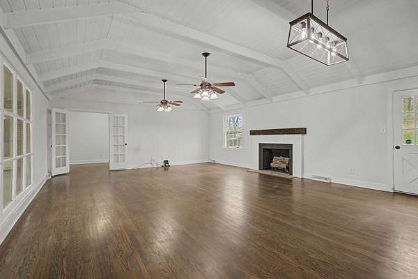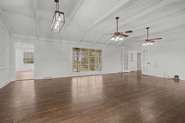 Beautiful 3-bedroom, 2 bath home situated on a spacious 2-acre lot in a quiet neighborhood in desirable Centerville. The stunning living room is the heart of the home, featuring soaring vaulted ceilings with a unique white shiplap finish, hardwood floors, a cozy gas fireplace, and two large ceiling fans. French doors lead to the bedroom wing, creating both charm and functionality. The kitchen offers granite countertops, white shaker cabinetry, and tile flooring with plenty of space for gathering and everyday living. Bedrooms are generously sized, and the primary bath includes vinyl flooring, a walk-in shower, and stylish barn doors for added character. Enjoy peaceful country living with room to spread out while still being conveniently located near town amenities. This property offers the perfect blend of comfort, style, and space both inside and out.