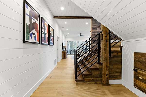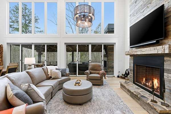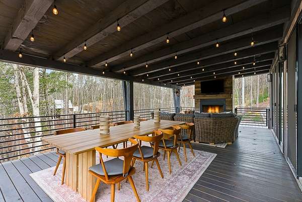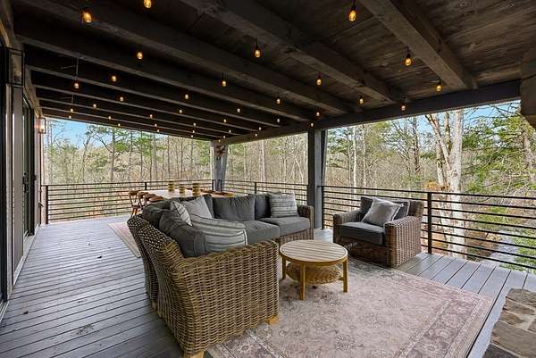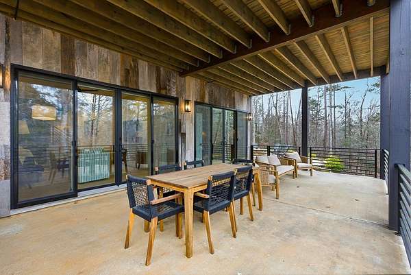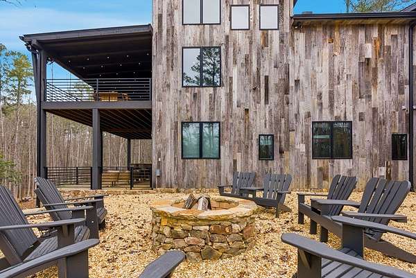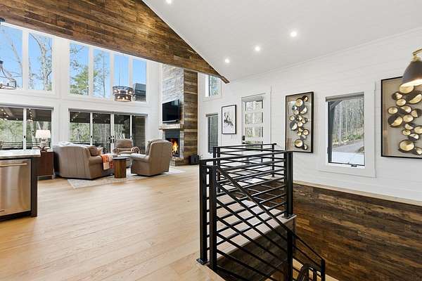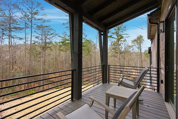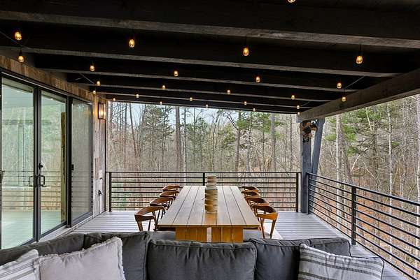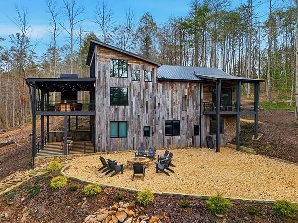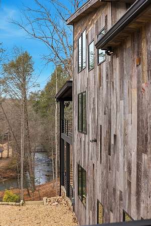 There are homes you tour, and then there are homes you experience. Enter 107 Cool Creek Trail, thoughtfully named Coldwater Ridge. From the moment you arrive, the world slows down. A paved drive opens quietly into a private clearing surrounded by forest, where reclaimed wood, steel, glass, and stone rise naturally from the landscape. Every element feels considered and entirely at home. Set on 4.37 acres within an intimate enclave of luxury homes, Coldwater Ridge is defined by its connection to nature. Just beyond the living spaces, approximately 440 feet of frontage along Fighting Town Creek unfolds below--wide, rushing, and constant. More river than creek, its movement becomes a steady, grounding presence. Built in 2024 and spanning approximately 3,000 square feet, the home blends warmth and modern clarity through reclaimed barnwood, clean architectural lines, soaring rooflines, and expansive glass. Anderson sliding doors dissolve the boundary between indoors and out, opening living spaces to covered porches and forest views. The main living area feels both expansive and intimate, with soaring ceilings, natural materials, curated lighting, and a fireplace anchoring the space. Automated remote-controlled shades quietly adjust the atmosphere, while technology remains seamless and nearly invisible. Every bedroom is en-suite, and the terrace level features a custom bunk room with three built-in bunks. Outdoor living is woven throughout with two covered porches, an outdoor fireplace, extensive hardscaping, and a fire pit setting surrounded by forest and the sound of moving water. A paved drive and parking area provide ample space while preserving privacy. Despite its seclusion, Coldwater Ridge is just minutes from downtown Blue Ridge, McCaysville, and Epworth, with wineries, dining, hiking, and outdoor adventure close at hand. Offered in a manner that allows for a seamless, turnkey transition. It isn't just a home, it's a feeling-one that deserves to be experienced.