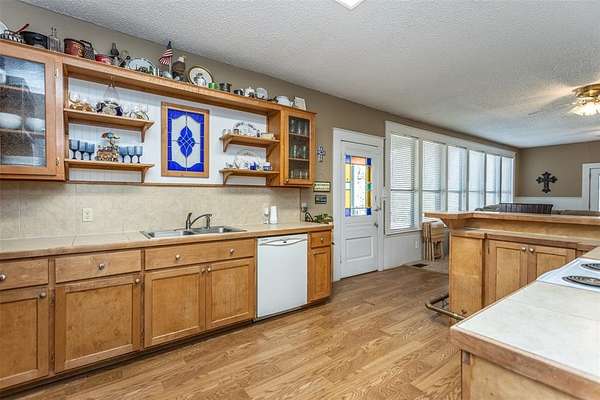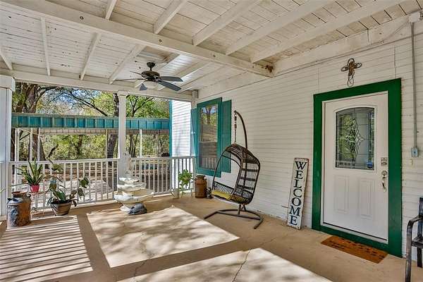PRIVATE OASIS FULL OF CHARM AND POTENTIAL!! Hidden in the trees just off Hwy 82, lies this adorable, two-story, 3200sf farmhouse full of love and memories. This 3.6ac wooded retreat sits at the end of CR 173 and is secluded from everything, you have to look closely to even tell it's back there. Four bedrooms and two full baths upstairs have been remodeled recently to include a blend of modern lighting and farmhouse accents along with a touch of rustic flair. Shiplap ceilings, decorative wainscoting, and white granite counters are just a few of the highlights. A covered balcony may be accessed by two, separate bedrooms while a large landing space outfits the top of the stairs. The primary suite features a huge walk-in closet and connects to a shared jack and jill bath. Downstairs, you will find another quaint bonus room, currently serving as a bedroom, with a detached armoire as it's closet feature. You will also find a clawfoot bath tub in the downstairs bath along with a spacious laundry area. The most unique feature of this downstairs living is its throwback saloon style bar and dining area, it is definitely a conversation piece for the entertaining enthusiast. An oversized garage with epoxy floors and spray foam insulation plus two covered car ports are attached to the house. The sprawling 3.6ac of added space does lie predominantly in the FEMA floodplain and the owner is currently paying flood insurance. They utilize this land with a fenced area for their goat herd and a scenic play area for the grandkids, while taking full advantage of the privacy the trees provide.. Added extras include a RV carport that is big enough for both a RV and a boat, scenic nature views and plenty of space to add your own improvements! Pentex electric, Woodbine water, and septic system serve as utilities. Central Heat & Air in the downstairs area of the home, mini-split units are servicing the upstairs.