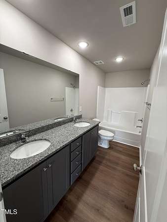 Est $1,583/moLovely ranch plan with rocking chair front porch! Cozy family room is open to the eat in kitchen that offers SS appliances, granite, tile backsplash and FRIDGE! Split bedrooms. Owner's suite with a walk-in closet and dual vanity. Two additional bedrooms share a full bathroom. Patio in back is great for entertaining guests. See agent remarks!
