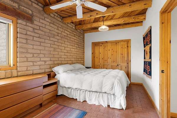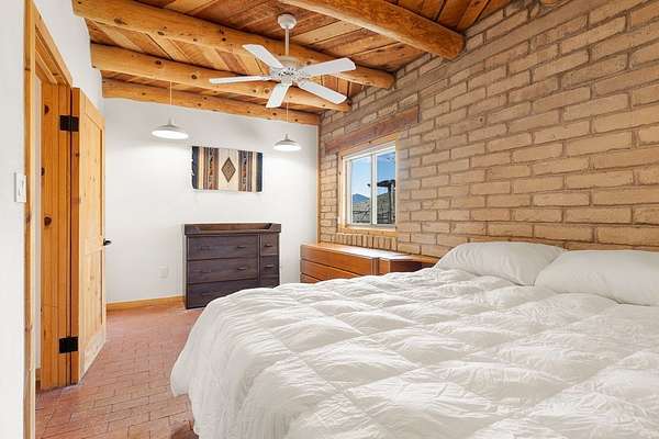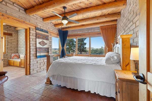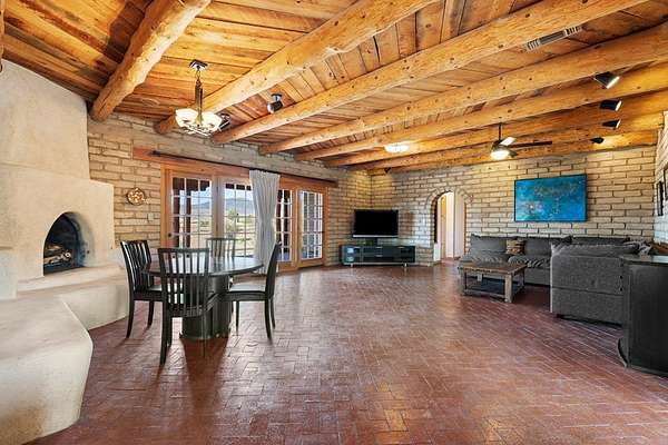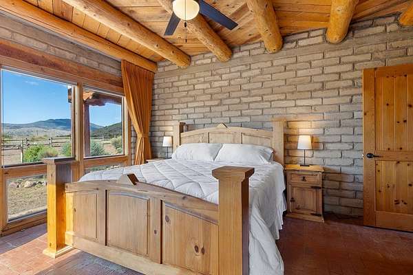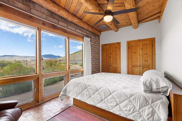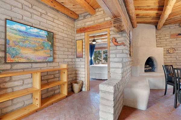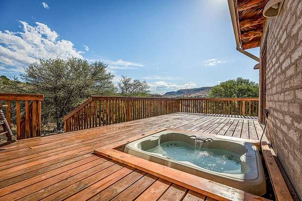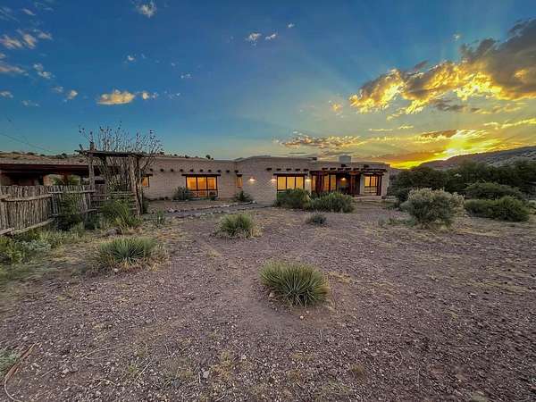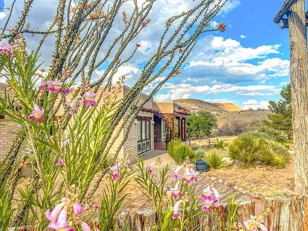 Est $5,162/moLocated a mile high in desirable Limpia Crossing this Southwest style 2,700+sf adobe home on 17+ acres was built by Steve Balardo's Rainbow Adobe. Four bedroom, three bath home thoughtfully situated to maximize privacy and provide unobstructed mountain views from every room. Sequestered 4th BR could be bonus room. Kiva fireplace, brick & Saltillo flooring, in-floor radiant heat and zoned central HVAC. 2-car carport. Deck hot tub, well. Developed private walking trail traverses property.