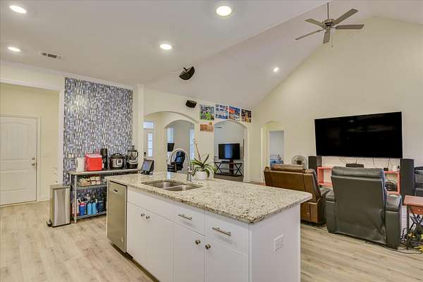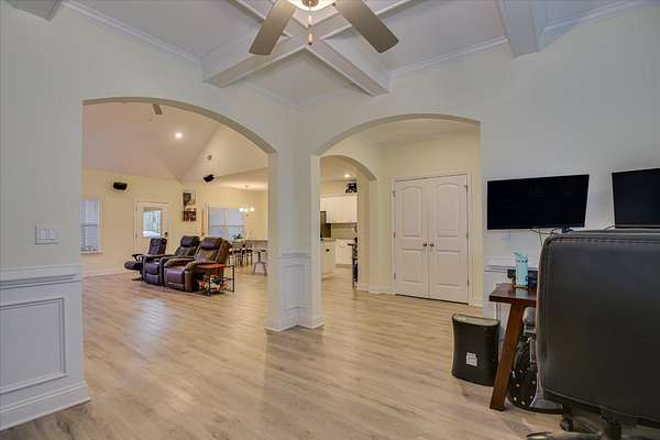 Welcome to a home that feels just right from the moment you arrive. This charming 3BR/2BA single-story home sits on nearly two peaceful acres with no HOA, offering the space and freedom many buyers are searching for. A classic rocking-chair front porch sets the stage for relaxed, everyday living. Inside, the open floor plan is filled with natural light, creating an airy, comfortable atmosphere perfect for both quiet evenings and casual gatherings. The modern kitchen anchors the home with granite countertops, a large island, and a full suite of stainless-steel appliances-all included-making it easy to imagine settling in from day one. Vaulted ceilings in the living area and LVP flooring throughout add to the home's clean, inviting feel. A thoughtful split floor plan provides privacy, with a spacious owner's suite featuring a tray ceiling, double vanity, garden tub, separate shower, and generous closet space. Two additional bedrooms offer flexibility, while a bonus room with a coffered ceiling adapts easily to your needs-formal dining, home office, or playroom. A mudroom and dedicated laundry room add everyday convenience. Outside, the covered patio and expansive lot create endless possibilities-whether it's gardening, entertaining, or simply enjoying the quiet. An oversized two-car garage, extra storage, and additional parking pad complete the picture. Homes that combine space, style, and no HOA-while still offering easy access to Augusta and Waynesboro-don't come along often. This one is worth experiencing in person. A must-see property! Schedule your showing today!