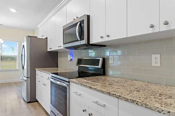 - Built-In Microwave, Dishwasher, Disposal, Electric Range