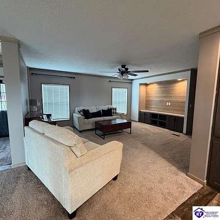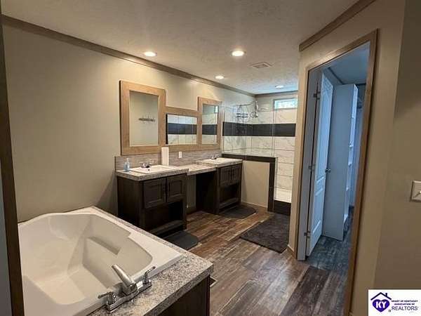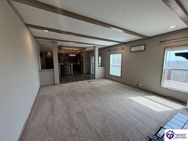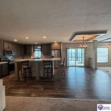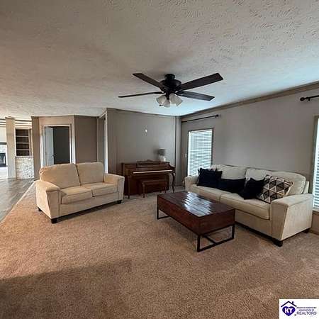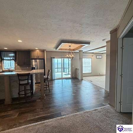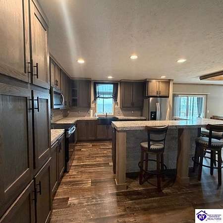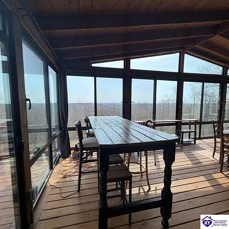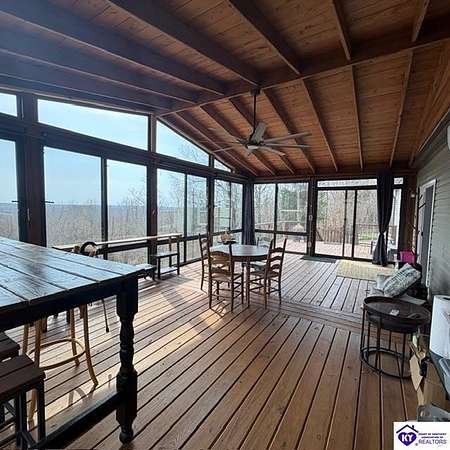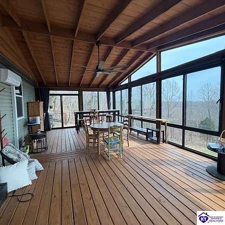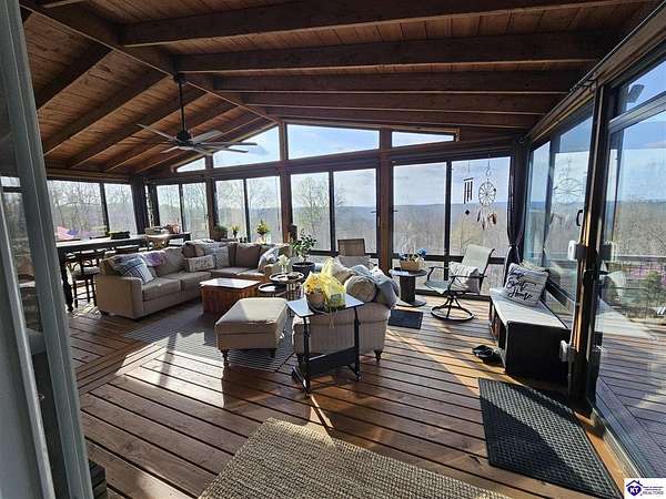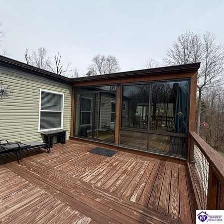 Welcome to 107 Junction Spur in Falls of Rough, KY Where peace, privacy, and natural beauty come together in perfect harmony. If you’ve been craving a quieter lifestyle surrounded by nature, this property delivers from the moment you step inside. The first impression is unforgettable, with a stunning sense of openness and clean, crisp lines defining this spacious 2,912 sq. ft. home. Situated on 21.12 acres, this ranch-style Fleetwood home offers sweeping views of your own private wildlife haven, ideal for nature lovers or hunting enthusiasts. A true highlight is the 30’ x 16’ heated and cooled glass sunroom, perfectly positioned to overlook the acreage. Whether you're enjoying morning coffee, hosting gatherings, or simply taking in the changing seasons, this space offers year-round comfort and breathtaking scenery. Designed with functionality in mind, the home features a convenient side entrance leading into a large laundry room, perfect for managing outdoor gear, muddy boots, or hunting attire without bringing the mess inside. At the heart of the home, you’ll find an expansive open-concept kitchen, dining, and living area that flows seamlessly toward the sunroom. Light, neutral finishes enhance the natural light pouring in, creating a warm and inviting atmosphere. The central kitchen bar serves as a hub for everything from casual meals to conversation and daily routines. In the living room, a wood-burning fireplace adds both charm and cozy ambiance. The sunroom itself has a distinct character, featuring vaulted wood ceilings that bring a rustic, nature-inspired feel indoors. Just outside, a private deck offers the perfect spot to soak up the sun or enjoy peaceful outdoor moments. The thoughtfully designed layout places the primary suite on one end of the home for added privacy, with three additional bedrooms and a full bath on the opposite side. The secondary bedrooms are generously sized and flexible for family, guests, or a home office. The primary suite is truly a retreat, complete with a spa-like bathroom featuring a large soaking tub, oversized walk-in shower, double vanities, and an impressive walk-in closet. Instead of a basement, the sellers have added a storm shelter for peace of mind. Whether you're a growing family or looking to downsize without sacrificing space for entertaining, this property offers the best of both worlds. Conveniently located just minutes from Rough River Lake State Resort Park, boat ramps, and local dining