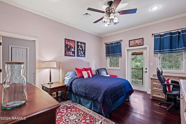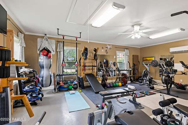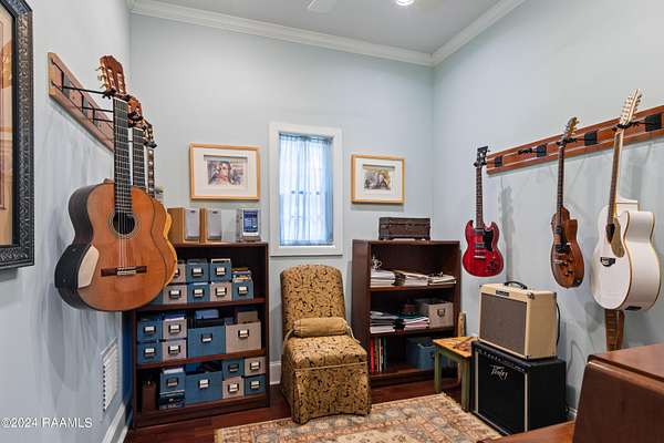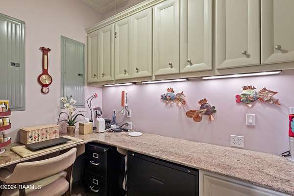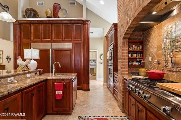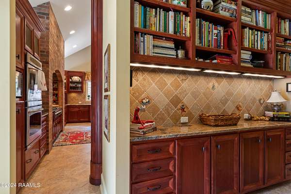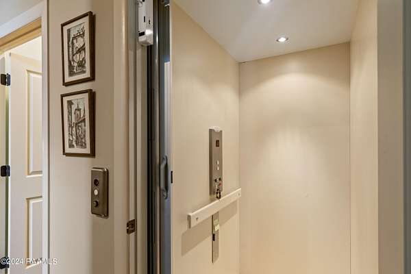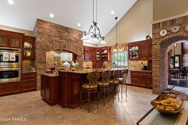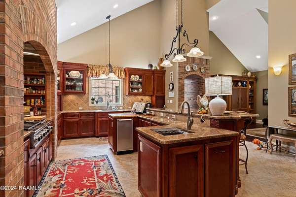 LOCATION, ACREAGE, QUALITY, CUSTOM FEATURES YOU WON'T FIND IN ANY OTHER HOME! Nestled on a sprawling 3.1-acre lot, this upscale residence offers a serene, wooded retreat with mature live oak trees. Conveniently situated just minutes away from Kaliste Saloom and Johnston St, this custom-built, one-owner home epitomizes luxury and craftsmanship with its quality construction. Step inside and be captivated by the soaring 24-foot ceilings and the expansive, open formal living and dining spaces. The wet bar features marble countertops, 80-bottle wine rack, wine fridge and has a pass-through window to the screened-in loggia area with a gas fireplace. The gourmet kitchen includes commercial-grade appliances, a 5-burner gas stove with griddle, double convection ovens, a microwave, two Sub-Zero refrigerators, Scotsman ice maker, and custom wood cabinets. The kitchen's highlights include two sinks- one with a hands-free pedal faucet, a water filtration system and a pot filler. The walk-in pantry and butler's pantry offer additional storage. This home features two spacious laundry rooms- one on each floor. There are numerous multi-purpose rooms including a library, game room, crafts room and a music room. The luxurious primary suite has a separate sitting room, with breakfast nook, an under-counter fridge and copper sink. The primary bath features dual sinks, a make-up vanity, a separate shower, a jet tub and dual closets. An elevator provides easy access to the upper level, where you'll find four generously sized bedrooms, each with its own balcony. Additional amenities include 2 two-car garages, a separate conditioned gym, a green house, a boat-UTV storage shed, water well for lawn and flower bed irrigation, a generator, raised irrigated vegetable gardens, and much more. Refer to the amenities sheet for a comprehensive list of features. This extraordinary home combines elegance, comfort, and craftsmanship, offering a unique opportunity to own a piece of paradise.