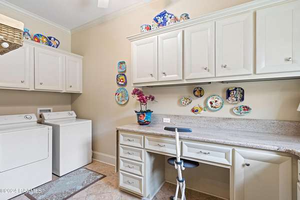 - 9+ ft Ceiling, Attic Access, Bidet, Bookcases, Built-In Features, Built-Ins, Cathedral Ceiling, Cathedral Ceiling(s), Computer Nook, Crown Molding, Double Vanity, Dual Closets, Electric Dryer Con, Electric Washer Con, Garden Tub, Gas Dryer Con, Gas Stove Con, Granite Counters, Guest Suite, High Ceilings, In-Law Floorplan, Kitchen Island, Multi-Head Shower, Office, Primary Bath, Separate Shower, Soaking Tub, Standalone Tub, Varied Ceiling Heights, Vaulted Ceiling(s), Vaulted Ceilings, Walk-In Closet(s), Walk-In Pantry, Wet Bar