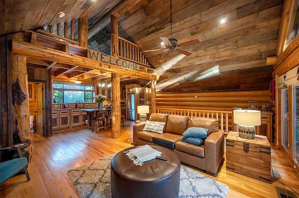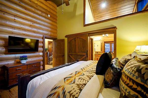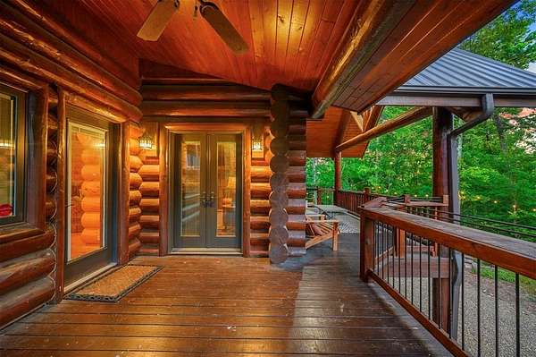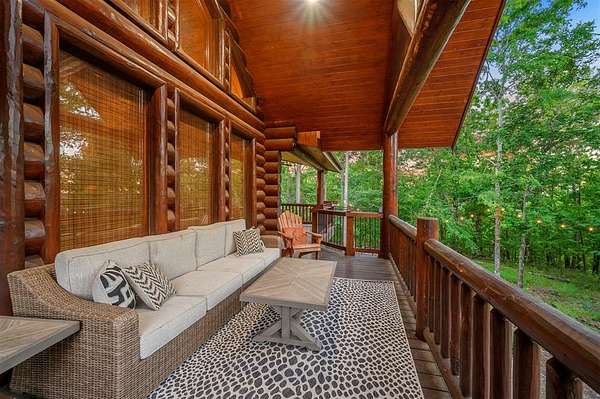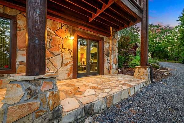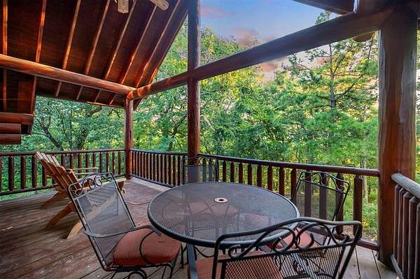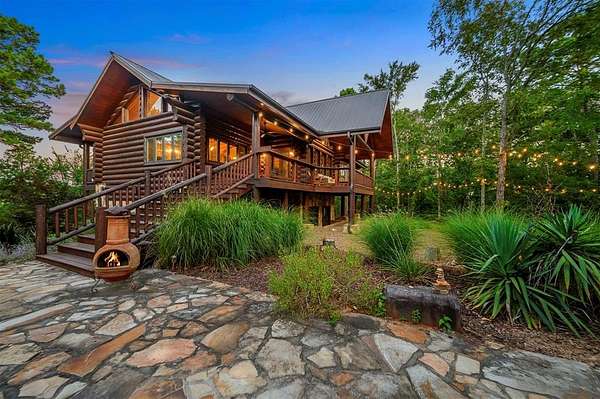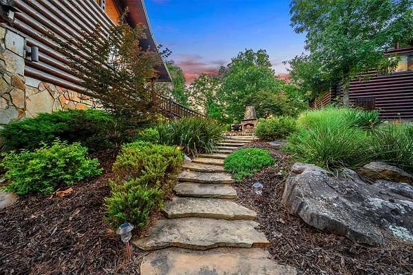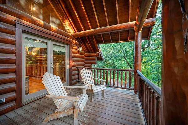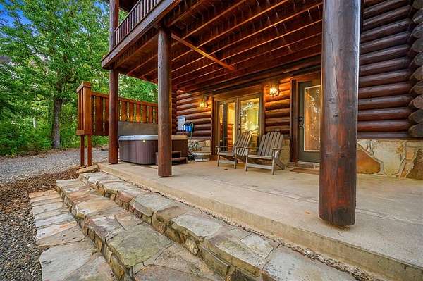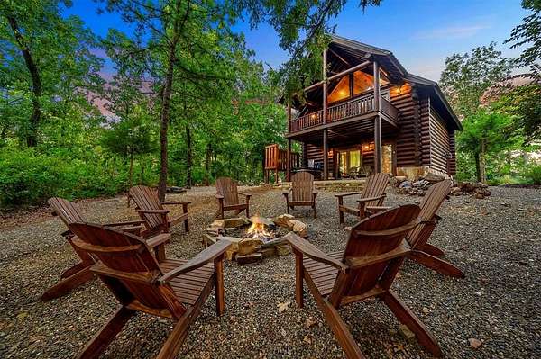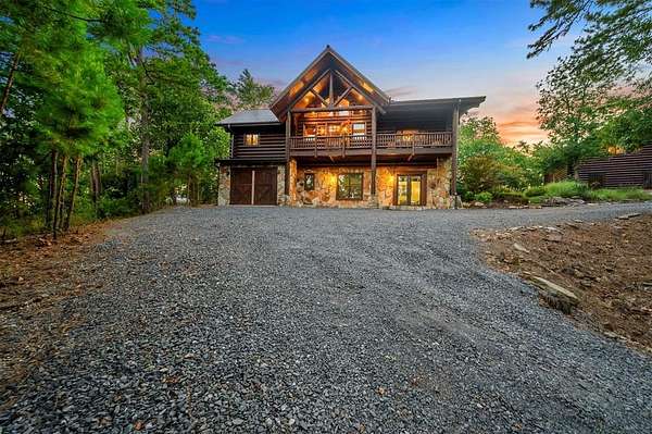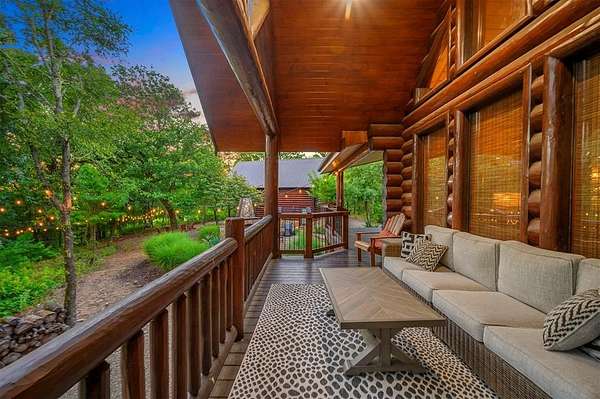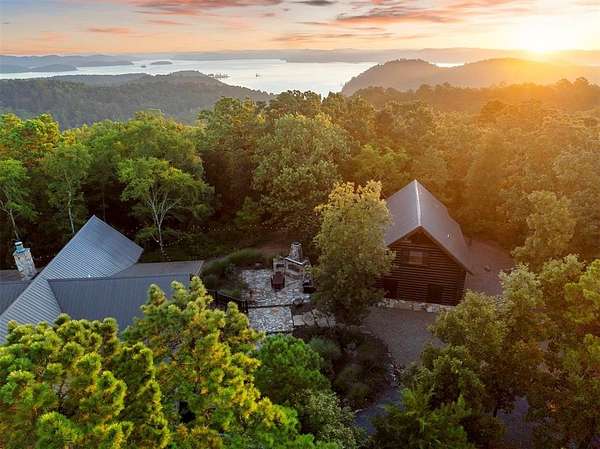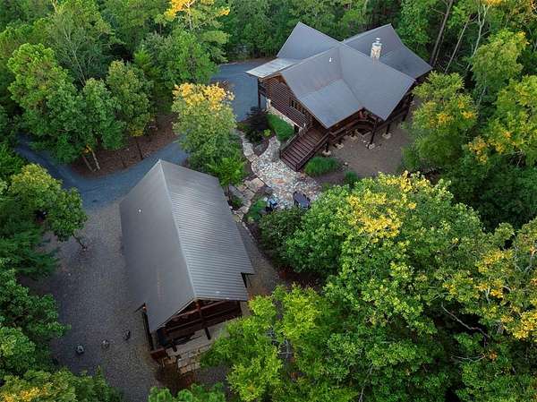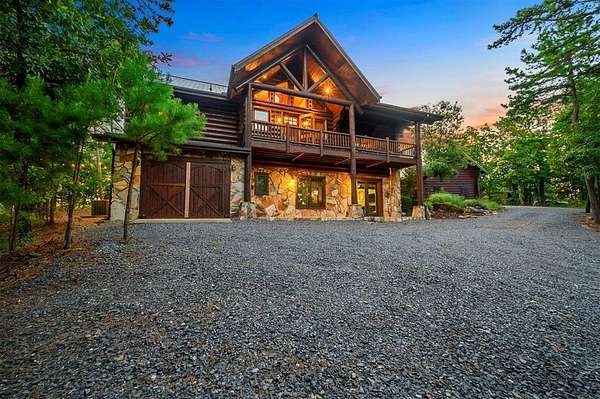 Welcome to Skyline, 2 stunning custom-built luxury log cabins in the exclusive Cordillera community w/ views of Broken Bow Lake! This one-of-a-kind retreat blends the timeless charm of a traditional rustic log cabin with elegant modern touches and has been featured in magazines for its spectacular beauty. Walking up to the main cabin, you are greeted by a courtyard where you can look through the Ouachita National Forest, which flanks this 2.5-acre property on both sides. Wildlife abounds, and the quiet sounds of the forest will amaze you. The main home features 2 levels. Upstairs, you will find a beautifully designed kitchen that exudes rustic elegance w/ a gas range, granite counters, & custom cabinetry. Adjacent to the kitchen, the charming living area is defined by a stunning floor-to-ceiling stone fireplace & attached balcony. This main floor also has a half bath, a king master bedroom, and a full bath with french doors leading to one of the multiple decks. Downstairs is another king master bedroom suite with a full bath, a second living space, and a huge game room. Investors will want to add bunk beds in this room to turn it into the fifth bedroom, allowing this cabin to sleep 6 -12 more people to increase revenue! Step outside the main cabin across to the guest house, which can be rented out together or separately from the main cabin. The guest cabin features a bedroom and bathroom downstairs, and on the second floor is an open studio-like kitchenette and living room. There is a small sleeping loft space above the living area for additional guests. While everyone in your party will be enchanted by the interior, you will most certainly want to spend much of your time by the custom-built outdoor fireplace and in the hot tub staring up at the night sky. From the thoughtfully designed interiors to the serene outdoor spaces, Skyline offers a rare combination of comfort & style that elevates every moment spent here. TAKE A TOUR BY VIEWING THE WALKTHROUGH VIDEO.