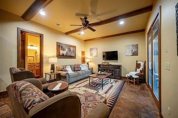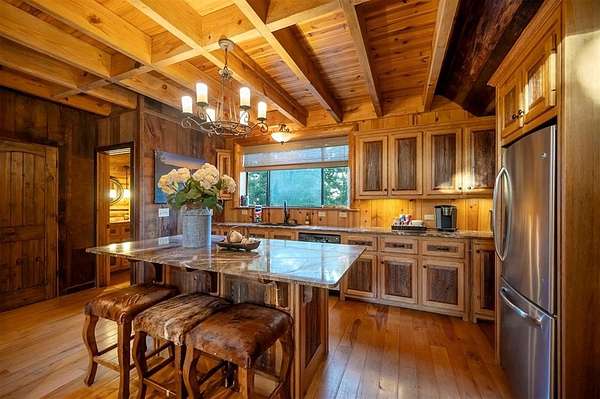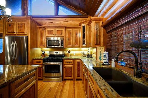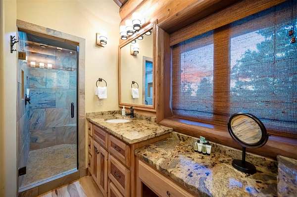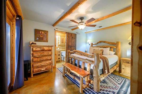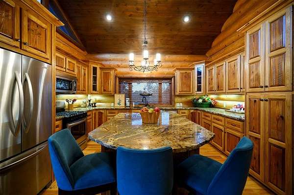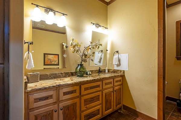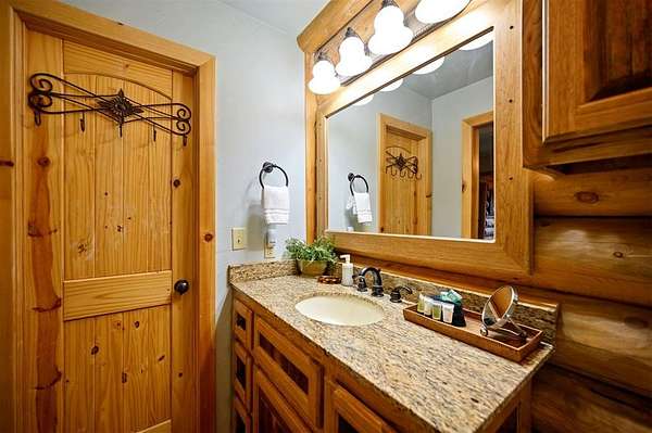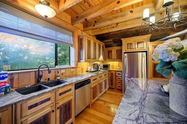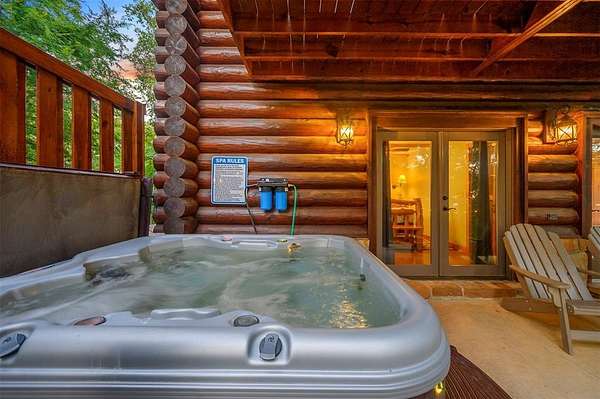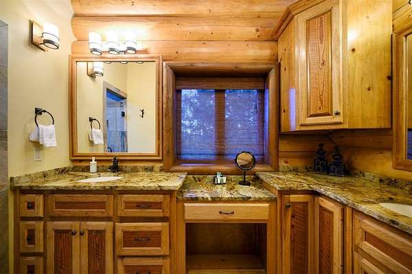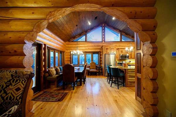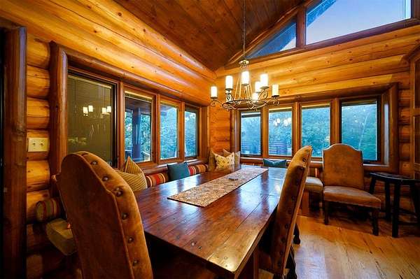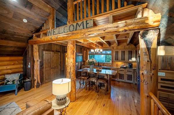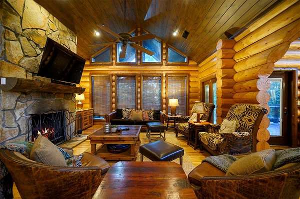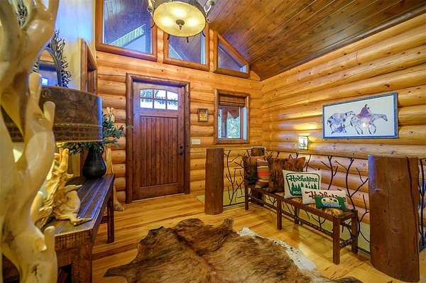 Welcome to Skyline, 2 stunning custom-built luxury log cabins in the exclusive Cordillera community w/ views of Broken Bow Lake! This one-of-a-kind retreat blends the timeless charm of a traditional rustic log cabin with elegant modern touches and has been featured in magazines for its spectacular beauty. Walking up to the main cabin, you are greeted by a courtyard where you can look through the Ouachita National Forest, which flanks this 2.5-acre property on both sides. Wildlife abounds, and the quiet sounds of the forest will amaze you. The main home features 2 levels. Upstairs, you will find a beautifully designed kitchen that exudes rustic elegance w/ a gas range, granite counters, & custom cabinetry. Adjacent to the kitchen, the charming living area is defined by a stunning floor-to-ceiling stone fireplace & attached balcony. This main floor also has a half bath, a king master bedroom, and a full bath with french doors leading to one of the multiple decks. Downstairs is another king master bedroom suite with a full bath, a second living space, and a huge game room. Investors will want to add bunk beds in this room to turn it into the fifth bedroom, allowing this cabin to sleep 6 -12 more people to increase revenue! Step outside the main cabin across to the guest house, which can be rented out together or separately from the main cabin. The guest cabin features a bedroom and bathroom downstairs, and on the second floor is an open studio-like kitchenette and living room. There is a small sleeping loft space above the living area for additional guests. While everyone in your party will be enchanted by the interior, you will most certainly want to spend much of your time by the custom-built outdoor fireplace and in the hot tub staring up at the night sky. From the thoughtfully designed interiors to the serene outdoor spaces, Skyline offers a rare combination of comfort & style that elevates every moment spent here. TAKE A TOUR BY VIEWING THE WALKTHROUGH VIDEO.