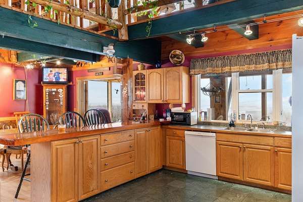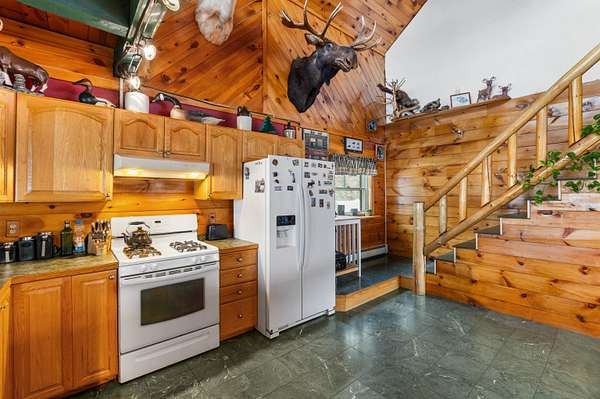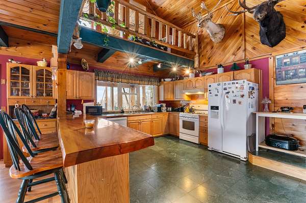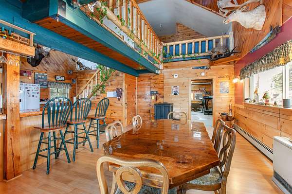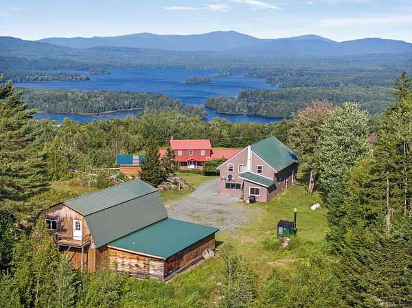 Beautiful Lakeview home in Errol. Freshly surveyed- Currently Used as an Air BNB and booking up fast for the upcoming season. Almost $20,000 in rent last year in 0nly 6 months. This expansive 30x60 post and beam home offers a harmonious blend of rustic charm and modern amenities, all while providing the million-dollar views of Lake Umbagog. The property is currently managed by a Superhost on Airbnb, reflecting its appeal to visitors seeking a serene getaway. The home boasts three bedrooms and two bathrooms, providing ample space for family and guests. A 26x56 garage and a 22x50 attached carport offer abundant storage for vehicles and recreational equipment. Enjoy comfort year-round with multiple heating systems, including an outdoor wood boiler and an on-demand propane furnace. Situated near ATV trails and offering direct snowmobile access (with neighbors' permission), outdoor enthusiasts will find endless opportunities for adventure. The 20x30 barn is ideal for raising animals such as pigs, cows, or chickens, catering to hobby farmers or those seeking a self-sufficient lifestyle. The area above the garage presents potential for additional living space, allowing for customization to suit your needs. The open-concept kitchen and dining area feature vaulted ceilings, creating a spacious and inviting atmosphere. Sunrooms on both levels provide panoramic views of the surrounding New Hampshire and Maine landscapes. The property can be sold fully furnished, minus a few personal items. Even the Animal mounts can stay. Currently produces $200 per night midweek and $250 weekends.