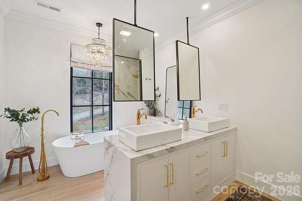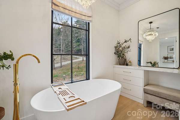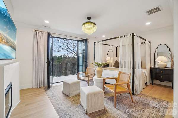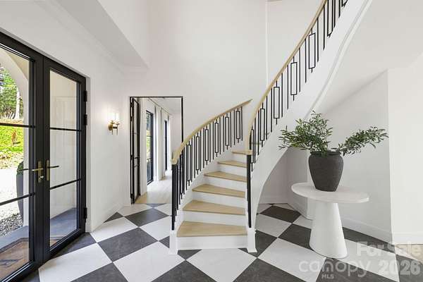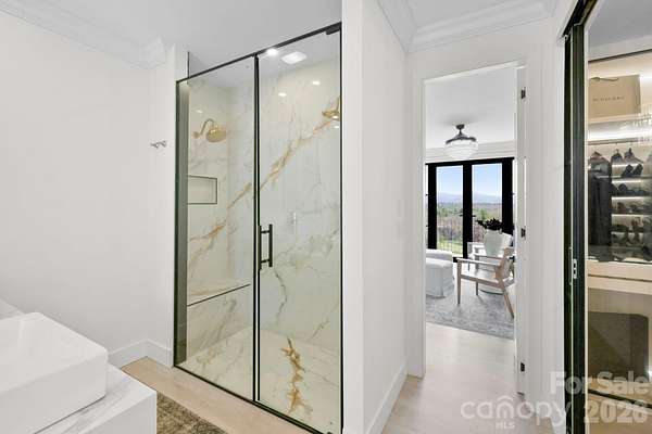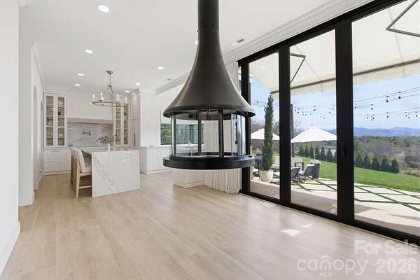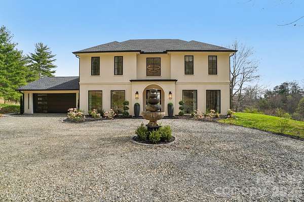 This uniquely constructed French Provincial estate blends timeless European charm with sleek contemporary design, set on 2.1 acres of cleared land with sweeping year round long range mountain views. With 3,444 square feet of refined living space, this 3- bedroom + home office, 2.5-bath residence offers a harmonious balance of craftsmanship, elegance and comfort. A circular driveway complemented by a serene fountain welcomes your guests as they arrive. Entering the home, a front salon creates the ideal receiving room, with a glass-enclosed wine display and face to face seating, adjacent to a formal elongated dining area, an artful statement that sets the tone for sophisticated entertaining. The main living area centers around an elegant spiral staircase at the entry as well as a striking floating ethanol gel fueled fireplace, serving as sculptural focal points, beyond which, boxed bay windows capture timeless views of rolling pastures in the foreground and the soft hues of long range Blue Ridge Mountain views. The kitchen is enhanced by a breakfast island, under-mounted lighting, glass cabinetry and an abundant butler's pantry. The primary suite is a private sanctuary, highlighted by a lavish master closet with glass display cases worthy of a boutique, and a primary bathroom with a sink island and floating mirrors, touchless sensor commode, elegant freestanding soaker tub and separate grout free quartzite shower stall. Pull down stairs lead to finished attic space with remote control lighting. This masterpiece offers a rare fusion of old-world grace and modern luxury, crafted for those who appreciate both artistry and innovation in design.