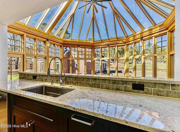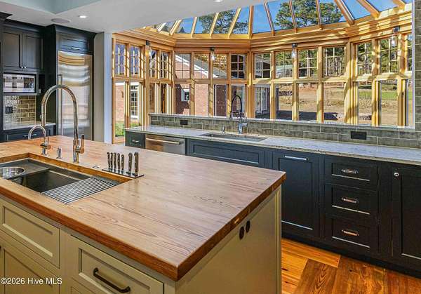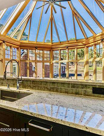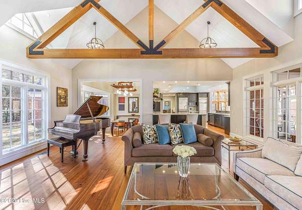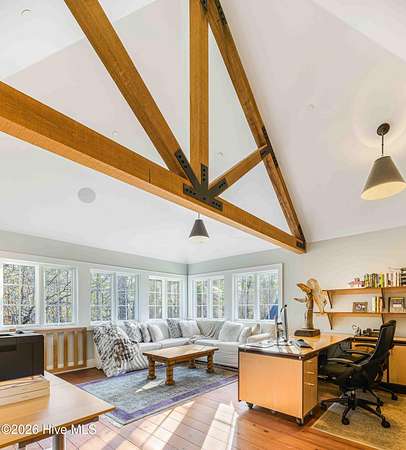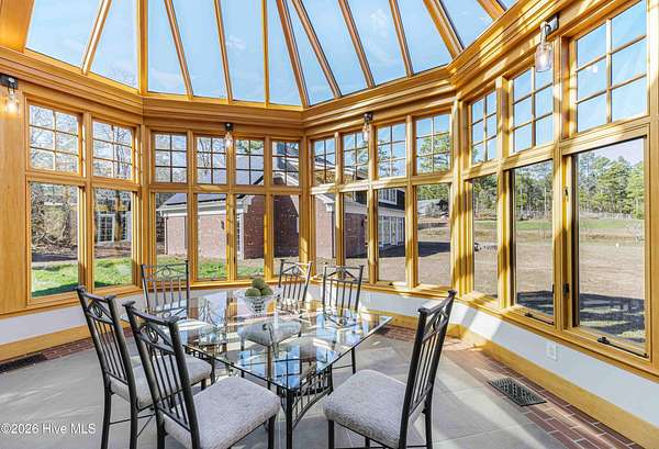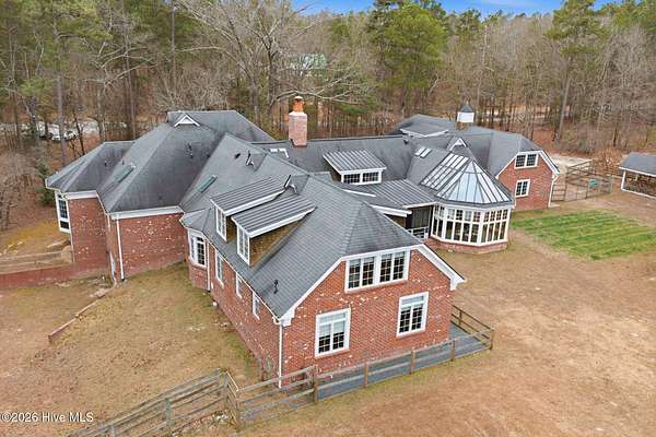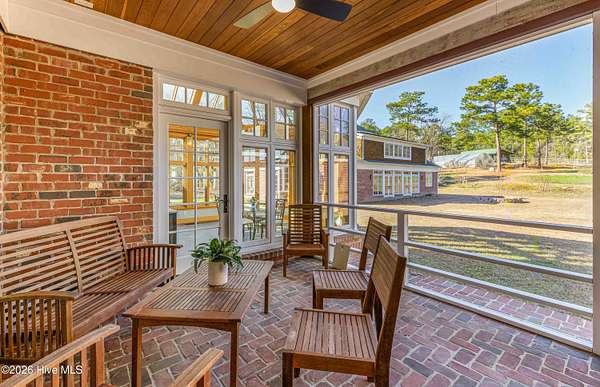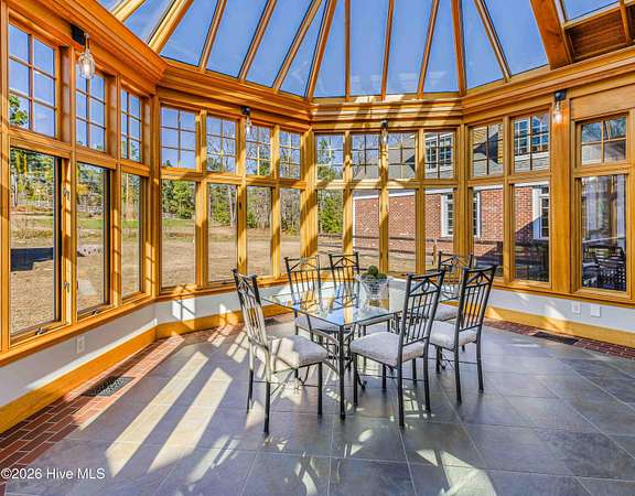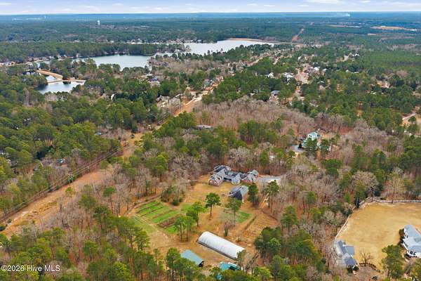 Flow Farm is a rare offering--an architecturally significant private estate set across 15 contiguous acres just three miles from the heart of Pinehurst. Designed by acclaimed architect Robert Clark as one of his final works, the residence blends scale, craftsmanship, and livable luxury with a setting that offers both privacy and long-term potential. The main residence offers 6 bedrooms and 7.5 baths, unfolding across three levels connected by multiple staircases, allowing for privacy, flow, and layered functionality. Expansive windows, vaulted ceilings, and curated sightlines bring natural light and landscape into every space. At the center of the home, a chef's kitchen with full scullery is equipped with Sub-Zero and Wolf appliances and connects seamlessly to formal dining, living areas, and a custom glass conservatory--creating a natural flow for both everyday living and large-scale entertaining. Extensive custom cabinetry, built-ins, and thoughtfully designed storage systems are integrated throughout the home, including custom closet systems with drawers in every closet and two dedicated laundry rooms. The home includes approximately 8,519 square feet of finished heated living space above grade, plus a partially finished walk-out lower level with theater, recreation, secure storage, and expansion potential. A private guest apartment above the mudroom provides additional flexibility for extended living or hosting. Beyond the residence, the property is fully equipped for agricultural production and land stewardship. Approximately three acres are actively farmed using veganic and regenerative practices, supported by a geothermal high tunnel greenhouse, composting systems, biochar production, and operational farm infrastructure. Engineered for sustainability and independence, the estate integrates geothermal HVAC, solar energy, private water systems, and enterprise-grade connectivity. USDA agricultural zoning and Pinehurst ETJ positioning allow for agritourism, hospitality, equestrian use, or a branded destination concept, with potential agricultural tax advantages. Flow Farm is more than a residence--it is a fully realized estate offering a rare combination of land, architecture, infrastructure, and vision. Transferable Pinehurst Country Club Membership, available buyer to pay transfer fee.
