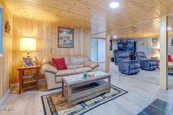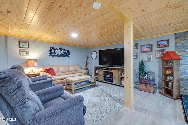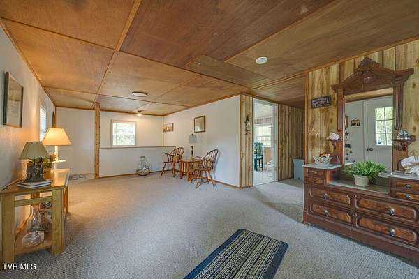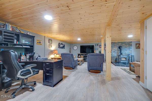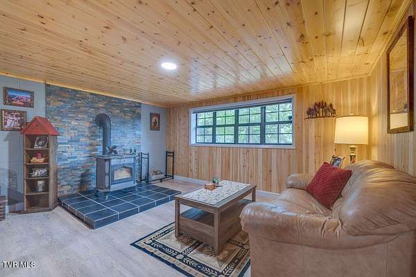 Welcome to your own private retreat on 18.3 acres with approximately 856 feet backing directly to the Cherokee National Forest, giving you protected views and unmatched privacy with no future development behind you. Tucked away in nature, this property offers the perfect balance of seclusion and convenience, just minutes from Johnson City, Jonesborough, Greeneville, and Erwin. Enjoy low Greenbelt taxes, a peaceful stocked pond with catfish, bass, and panfish, abundant wildlife, and a variety of fruit trees right outside your door. A circular driveway welcomes you home and enhances both convenience and curb appeal. The main level offers three comfortable bedrooms and two full baths, including a remodeled hall bath with double sinks and a walk in shower, and a primary suite with its own seated shower. The kitchen is beautifully finished with granite countertops and whitewashed hickory cabinets, creating a warm and inviting space for gatherings that leads to a bright sunroom with removable windows that can be enjoyed year round. Downstairs features a cozy wood burning stove in the family room with tongue and groove ceilings, a large flex space for crafts or hobbies, the laundry area, and a new stand up deep freezer. The walk out basement adds functionality and versatility. The detached two car garage offers 768 square feet unfinished, with an additional 768 square feet above, ideal for guest quarters, a mother in law suite, or studio space. If that is not enough, there is also a separate one car detached garage workshop with power, a wood stove for heating, and ample outlets. Major updates include a new metal roof on the garage in 2024, new hot water heater, updated PEX plumbing, and a four year old HVAC system under warranty. Whether you are looking to homestead, hike directly into the Cherokee National Forest, hunt, ride four wheelers, fish your own stocked pond, or simply unwind in your private escape, this property offers endless possibilities for a lifestyle rooted in both comfort and nature. Buyer to verify all information.
