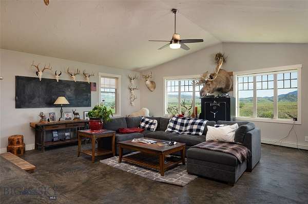 On the bluffs of the Jefferson River you'll find this gorgeous, lush, end of the road, 34 acre ranch with Parrot Ditch running through it to sprinkle your fields and water your livestock. Truly one of the best offerings in Whitehall to come available. Stunning, 360 degree views of the mountains, river, and valley. Live the Montana Dream here at this 4B/3B + Office + Media Room, custom ranch home. Comes with fenced raised gardens, adorable chicken coop, and huge, 50x60, corbond insulated 3 bay shop with bathroom and shower for business or for all the toys for your adventurous pursuits or for Both! The Chef will love cooking farm to table meals in the spacious kitchen with SS appliances, double ovens, granite counters, and prepping and serving meals on the huge, oversized island. Open kitchen with den/gathering place with wood stove and windows all around to take in the mountain views. Separate but connected is a large media room and 3 guest bedroom wing of the home. And off the Main Entry is a gigantic covered patio to grill, garden, or just enjoy the outdoors and be protected from the sun and thunder storms that so often roll in. New bridges over Parrot Ditch have been constructed to get around the ranch. Wheel Lines Convey. Shop has AC. Super convenient to the HWY, Downtown Whitehall, Cardwell. And access to fishing, floating the Jefferson River only .08miles from the property. AMAZING!! Only about 35 minutes to the airport and 1 hour to Bozeman. With NO COVENANTS or ZONING, Skies the limit on your dreams! Make your appt today to see this remarkable property!