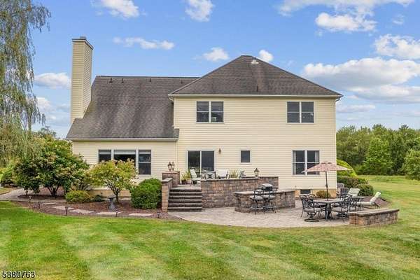 Drive up through open green pasture to the rocking chair covered front porch that greets you into this spacious and younger center hall colonial! Two story foyer, formal living and dining rooms with hardwood flooring, double door entry to first floor home office, large powder room and spacious center island eat-in kitchen with pantry and stainless steel appliances is open to family room with wood burning fireplace, recessed lighting and 2nd staircase to upper level. Upstairs offers primary suite with sitting room area and huge walk-in closet, full bath with water closet, soaking tub, stall shower and double vanity. Three additional spacious bedrooms and updated guest bath complete the upper level. Basement has limitless possibilities with very high ceilings. Enjoy outdoor living with two-tiered paver patio with kitchen and grill, expansive room for games and entertaining. Other features include public water, storage shed (shed needs work/as-is), 5 year old gas water heater, thermal windows and more! Bathroom materials will be left for primary bath renovation. Underground invisible dog fence and collar included.