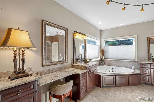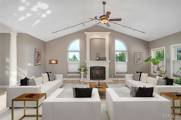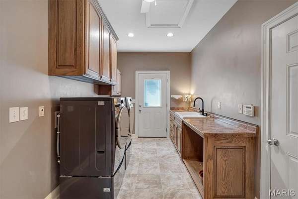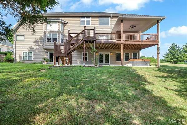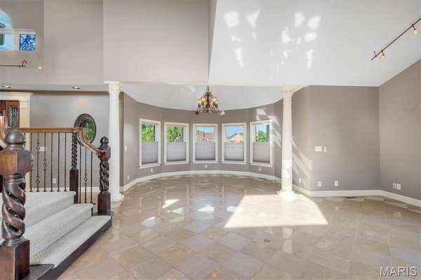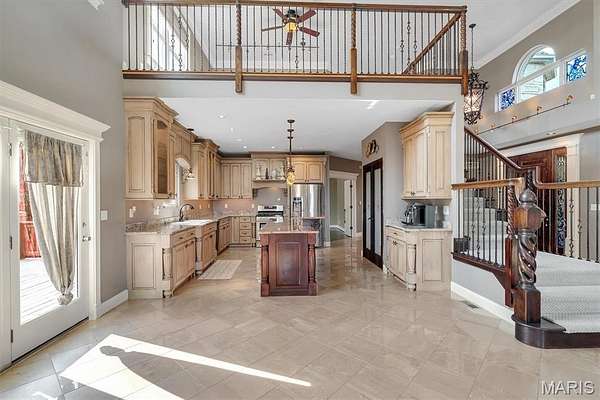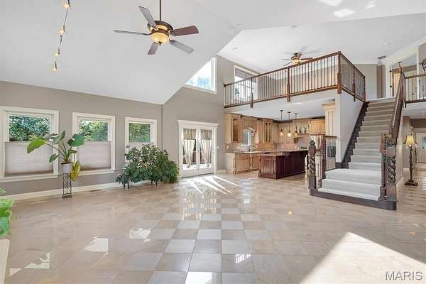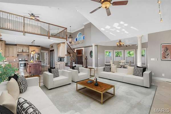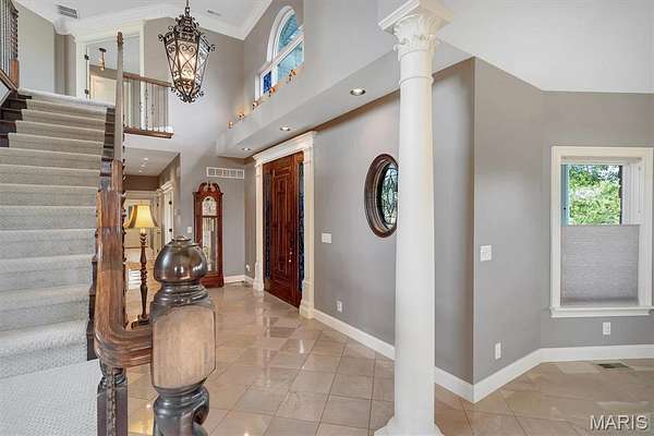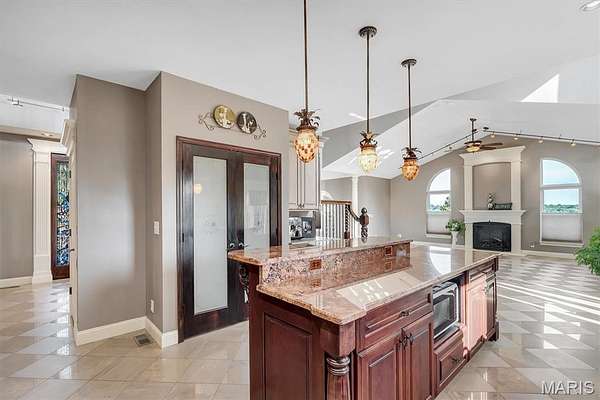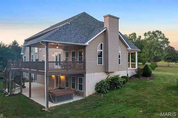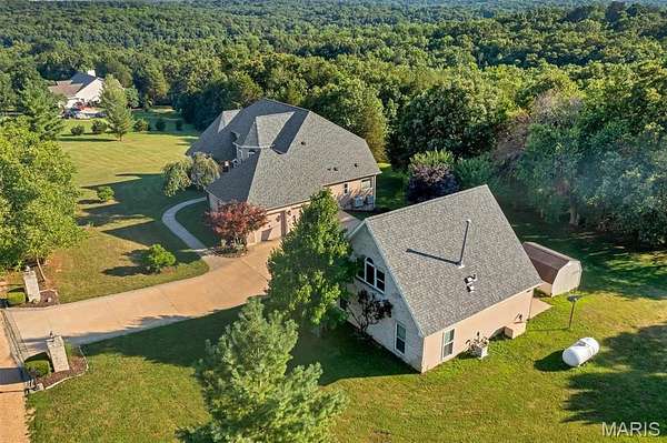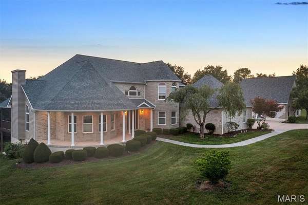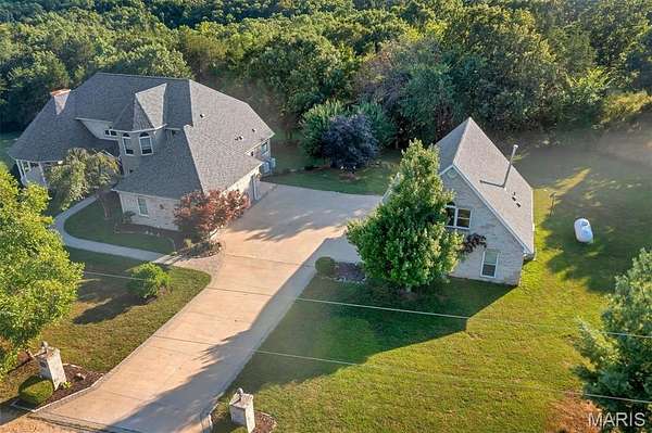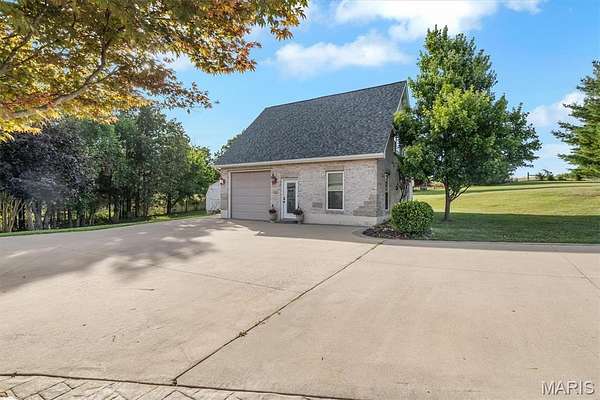 Motivated Seller! This stunning 1.5-story brick home sits on +/-4.04 acres (additional acreage available!) & offers luxury living both inside & out. 4 bedrooms & 3.5 bathrooms. Striking wrap-around porch w/ columns, perfect for enjoying serene country views. The great room boasts soaring 20' ceilings, porcelain flooring & cozy gas fireplace. Dining room w/ architecturally designed ceilings. Chef's kitchen is a dream come true w/ a 2-tier island, 52" custom made cabinets, under-cabinet lighting, & granite countertops. On the main floor is the private master suite w/ soaring high ceiling, bay window with seat & storage as well as an adjoining spa-like en-suite with two separate vanities, large jetted tub and tiled walk in shower. 2 additional bedrooms can be found at the top of the elegant open staircase along with large loft area. Finished, walk-out lower level includes 4th bedroom, full bath, game room, theater area, & wet bar, & has 9' pour. The 1,800 SF detached building offers in-law accommodations or office space & includes a 1 car garage. Additional features include Argentine porcelain flooring, crown molding throughout, tankless water heater, main floor laundry, central vacuum, double-hung windows, up-down blinds, & a 15x30 covered deck w/ a patio below. This is truly a one-of-a-kind, custom built property.