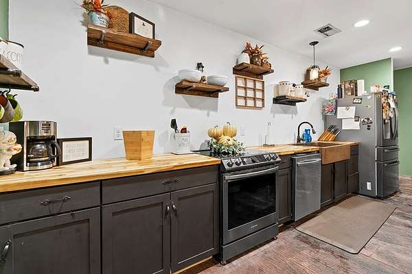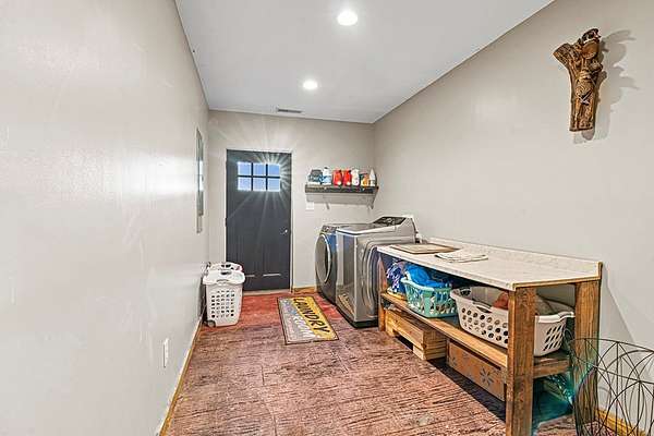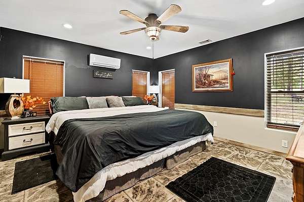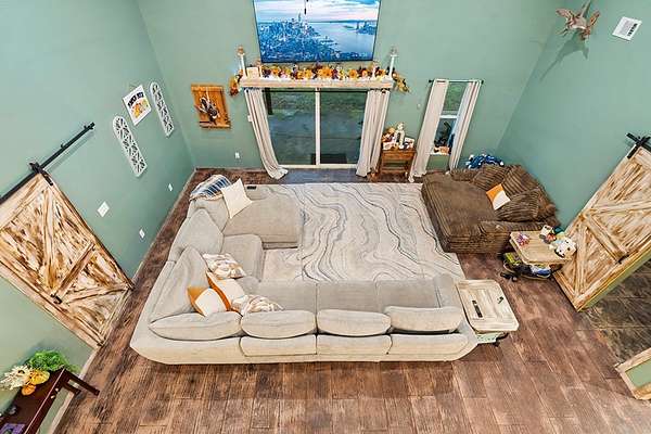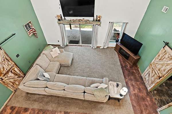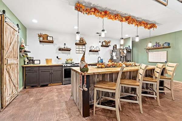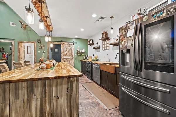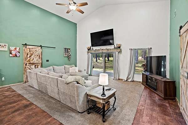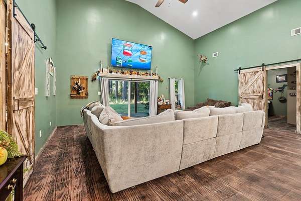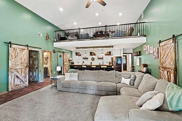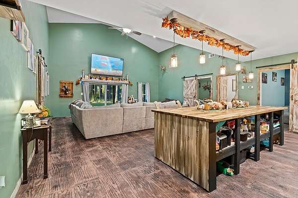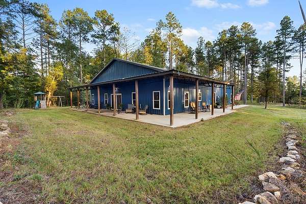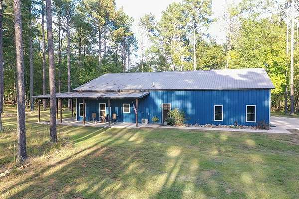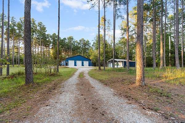 Barndominium Living on 17.30 Acres with Private Neighborhood Lake Access Experience the perfect blend of rustic charm and modern comfort in this 3 bedroom, 3 bath, 2-story barndominium set on 17.30 private acres with exclusive neighborhood lake access just minutes from your door. Inside, soaring vaulted ceilings, sliding barn doors, and custom stamped concrete floors set the tone for the open-concept living space. The heart of the home is the chef-inspired kitchen, complete with a massive butcher-block island, farmhouse sink, open shelving, and a huge walk-in pantry — a dream setup for entertaining and everyday living alike. The primary suite is a private retreat, featuring a spa-style bathroom with a freestanding soaking tub, double vanity, and a huge walk-in closet. The second bedroom also includes its own oversized walk-in closet, making storage effortless. Upstairs, the loft living area overlooks the great room and showcases a huge catwalk-style storage system built directly into the walls, providing an abundance of hidden storage unlike anything you'll find in a typical home. Additional highlights include a large laundry/mudroom and multiple full baths that add comfort and convenience throughout. Step outside and enjoy true country living: Wrap-around porch for relaxing mornings and sunsets Oversized 3-car garage + separate workshop for tools, toys, or a business setup 17.30 acres of private land for trails, hunting, gardening, or expansion Exclusive neighborhood lake access for boating, fishing, and watersports This property isn't just a home — it's a lifestyle. With its unique design, abundant storage, and private lake access, this barndominium is ready to welcome its next chapter.