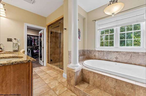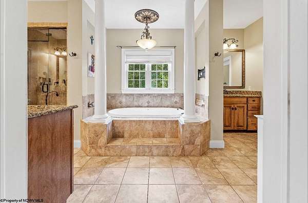 - 9 ft+ Ceiling, Cable Ready, Central Vacuum, Garage Door Opener, Intercom, Primary Bath, Skylight(s), Smoke Detectors, Some Window Treatments, Vaulted Ceilings, Walk-In Closets, Wet Bar, Whirlpool/Hot Tub