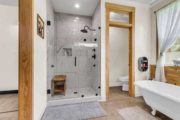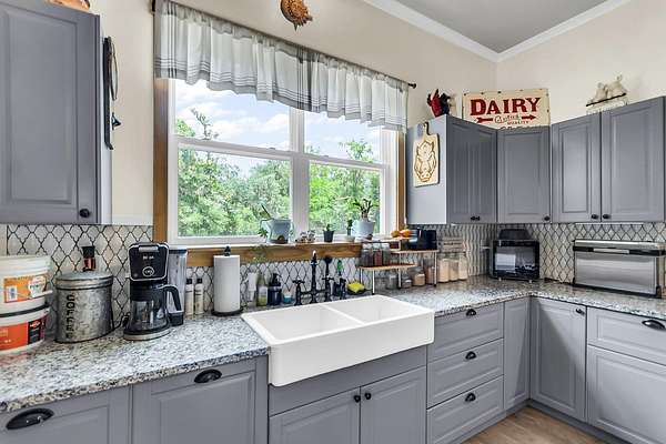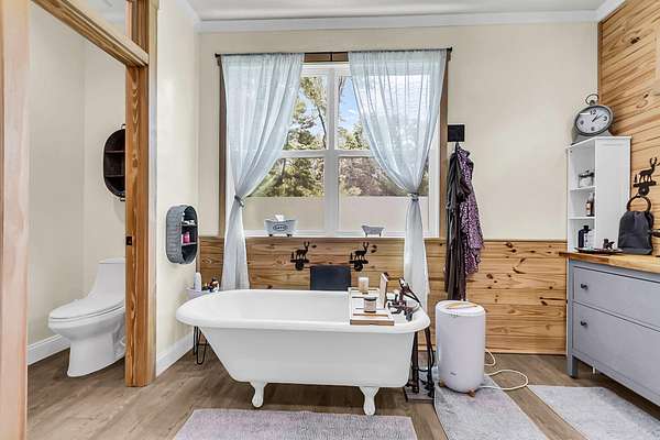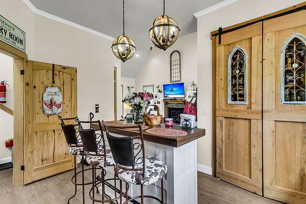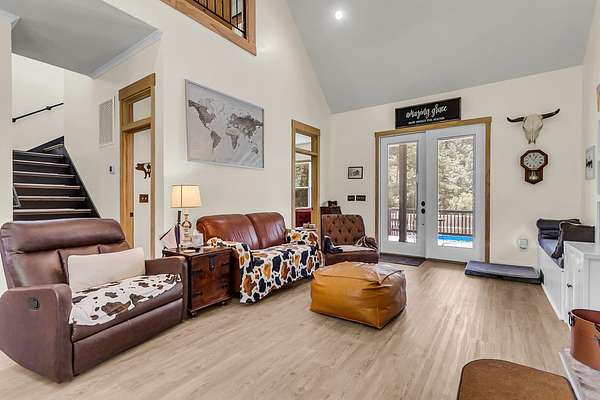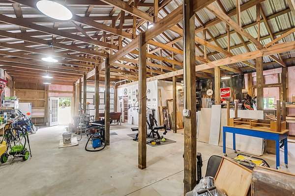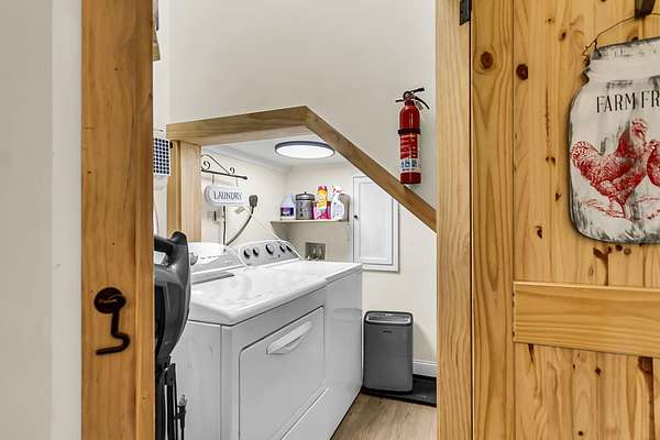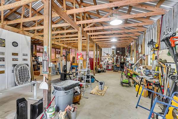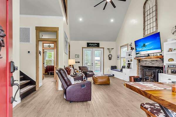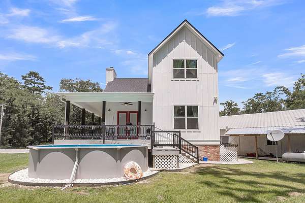 Welcome to 107 Nesmith Lane -- a charming farmhouse built in 2022 on 5.57 acres of peaceful countryside. This 2-bedroom, 2-bath home offers modern comfort with timeless style. Step onto the large wrap-around front porch and into an open-concept living area featuring vaulted ceilings, a cozy fireplace, and double doors that lead to the back porch -- perfect for relaxing or entertaining.The upgraded kitchen boasts stainless steel appliances and overlooks the spacious living and dining area. The primary suite is upstairs and features double vanities, a natural wood accent wall, walk-in closet and a stunning clawfoot tub for spa-like relaxation.Out back, you'll find a detached barn-style garage which includes a man cave. It is complete with electricity and partial heating and cooling ideal for projects, hobbies, or additional storage. With over five acres of land, there's plenty of room to enjoy the outdoors and make it your own private retreat.