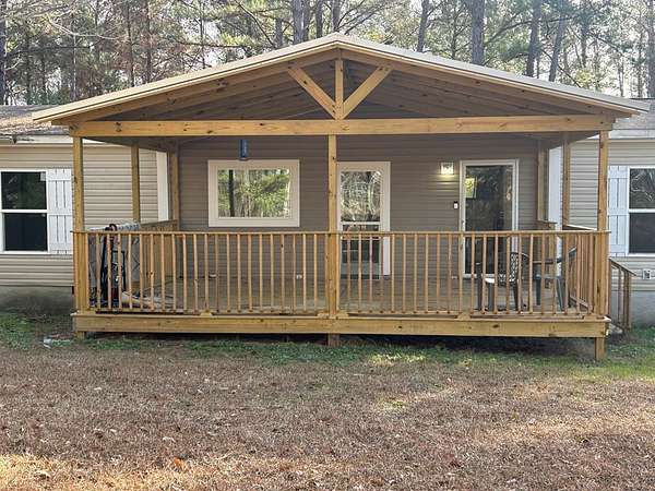 Your next home is waiting for you! This 4 bedroom, 2 bath manufactured home, is very inviting and offers an OPEN and Split floorplan. Main suite with walk in closet, walk in shower, separate garden tub for you to enjoy and relax with a window overlooking the secluded backyard. Home has 2 living areas, you decide what you want to do with them! Kitchen features black appliances, walk in pantry and view of both living areas and dining. Separate laundry area. A Nice covered porch and deck for relaxing or entertaining. This Manufactured home is on a permanent foundation with concrete blocks and concrete footers Alot of space for the money. Make it YOURS!