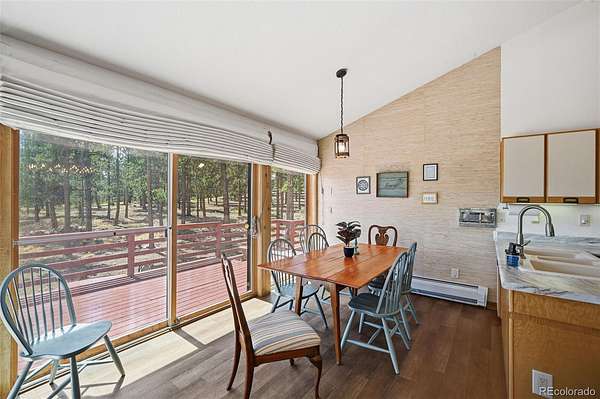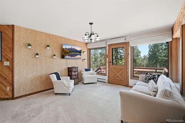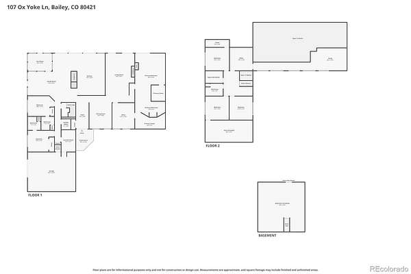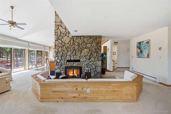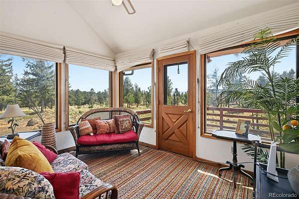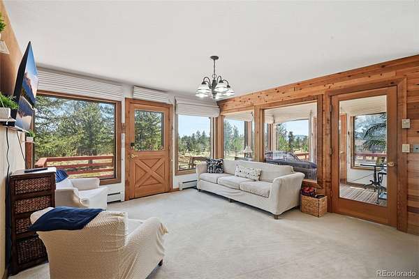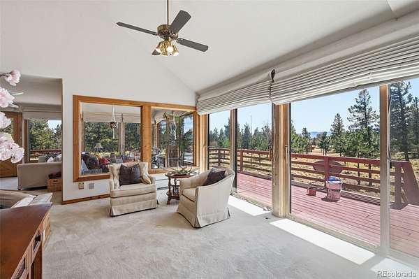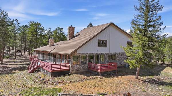 Welcome to your serene mountain getaway on 3.45 acres, full of wildlife and ready for guests. This contemporary mountain property offers peace, sun and privacy, with an incredible 6,500 square feet and unique features! A confirmed horse property, the lot is flat, buildable and fire-mitigated, offering a southern exposure with mountain & meadow views and frequent wildlife visitors. Inside, copious beds / baths - along with living, family and basement space (able to be finished) - offer a true multi-generational living space. The home offers vaulted ceilings, three rooms with fireplaces, offices / dens and a combo sauna / steam room in the primary suite! From the front entrance, several living / family rooms offer a warm welcome. Formal dining is off the kitchen, and additional dining exists at the kitchen island and between the kitchen and family room. The family room includes sunken bench seating around a wood-burning fireplace, along with a sunroom / indoor greenhouse fully plumbed for watering and maintaining plants! Two bedrooms on the main level are off the 2-car oversized garage. The primary suite on the other side of the home has an expansive walk-in closet and primary bathroom, gas fireplace, combo sauna / steam room (needs a plumbing fix) and additional receiving room with wet bar! Upstairs three more beds share a full bath, with additional office / den and loft doubling as a naturally-lit winebrary! Upstairs closet is plumbed for sink / laundry. Unfinished basement (accessible via garage) is ready for your game room finishes. Large windows make this home light and bright, but window coverings / blackout curtains throughout (all included) maintain the internal climate and save energy. Three patios were recently stained and the kitchen includes sliding glass doors to welcome nature. Driveways go to front door and garage. Ten minutes from historic Bailey, restaurants, shopping, winery & highways. This home is unique and full of character - see it today!