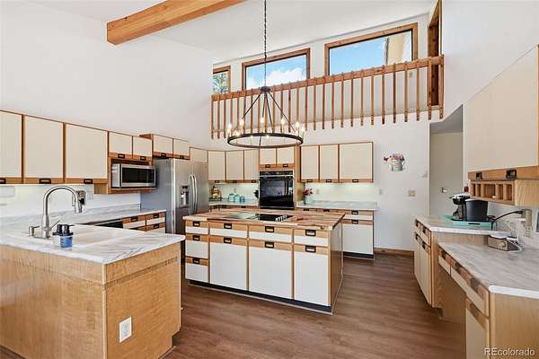 - Built-In Features, Butcher Counters, Ceiling Fan(s), Central Vacuum, Eat-In Kitchen, Entrance Foyer, Five Piece Bath, High Ceilings, High Speed Internet, Kitchen Island, Laminate Counters, Open Floorplan, Primary Suite, Radon Mitigation System, Sauna, Smoke Free, Vaulted Ceiling(s), Walk-In Closet(s), Wet Bar, Wired For Data