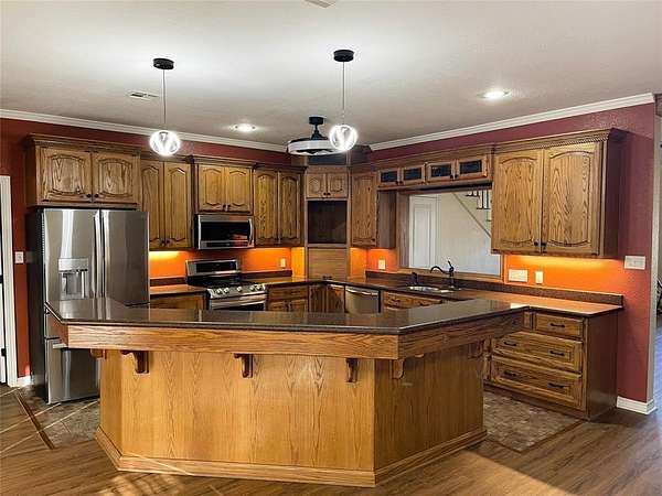 - Decorative Lighting, Eat-In Kitchen, Kitchen Island, Open Floorplan, Second Primary Bedroom, Vaulted Ceiling(s), Walk-In Closet(s)
