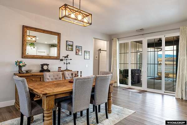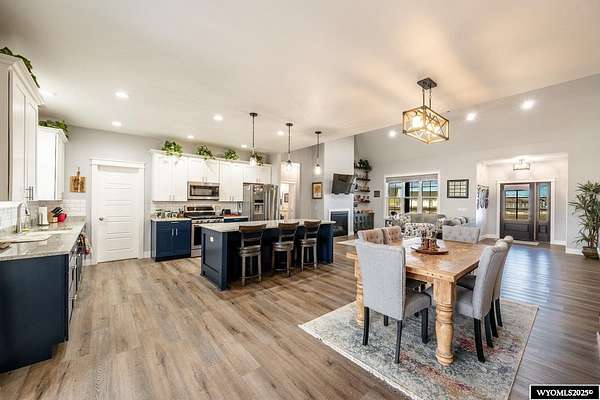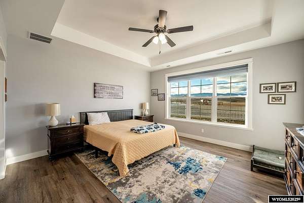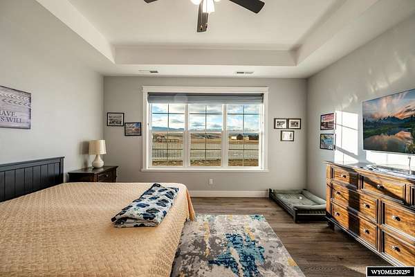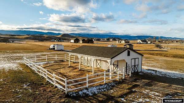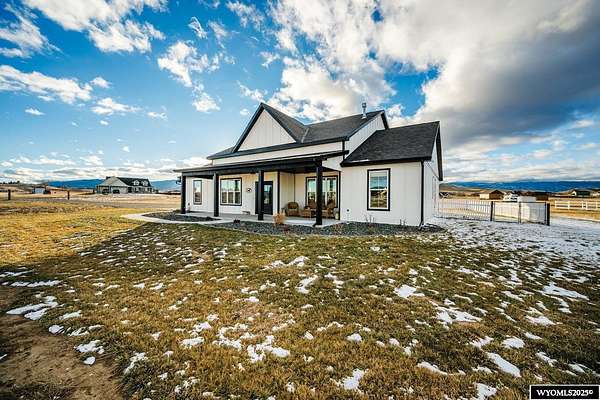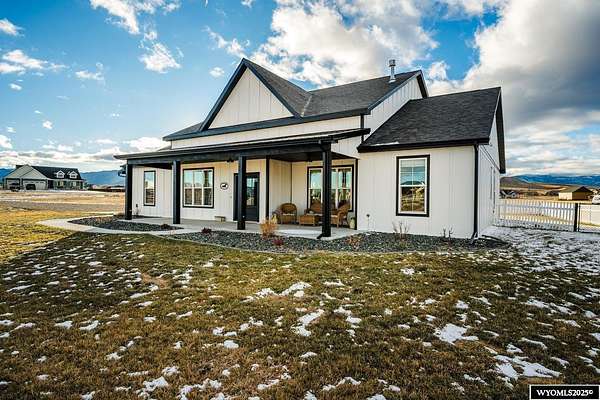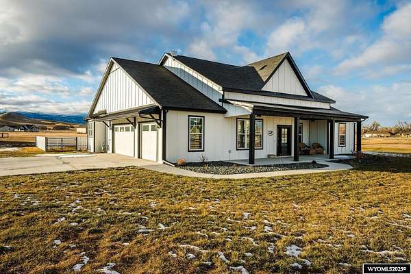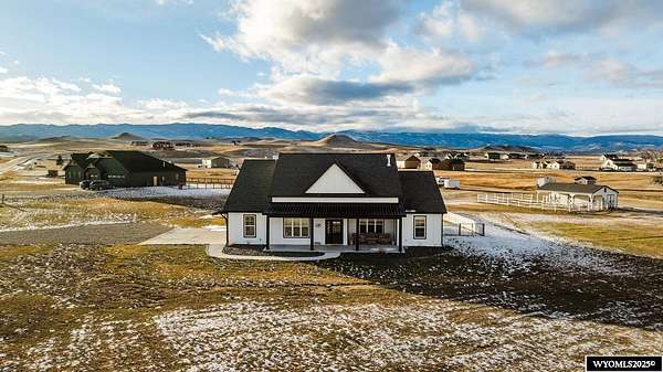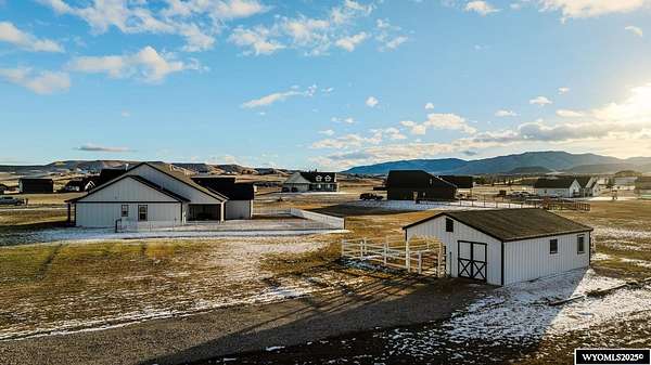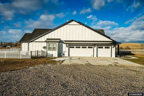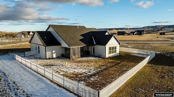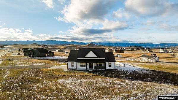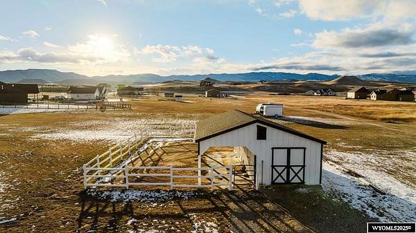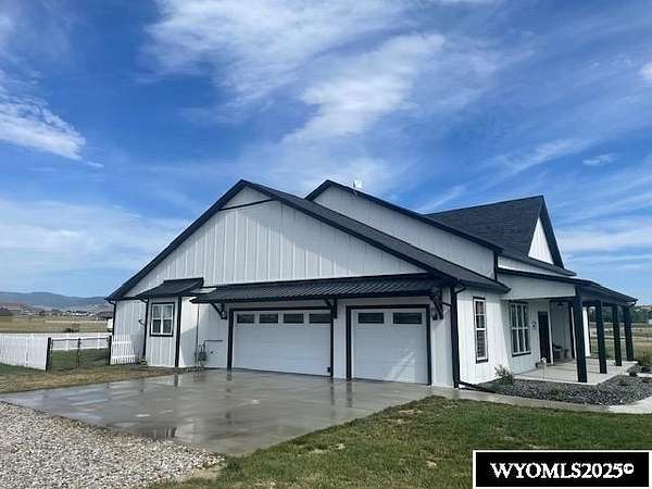 Discover this stunning ranch-style home featuring three bedrooms and 2.5 baths, perfectly situated on a spacious 2.36- acre corner lot. Enjoy breathtaking mountain views from the comfort of your living room, complete with vaulted ceilings and an open floor plan that enhances the spacious feel. The cabinets throughout the entire house are solid wood. The property includes a primary bedroom suite with a large bath and storage in the toilet room, a cozy gas fireplace, a fenced yard, and a separate barn with water and power for horses or hobbies. Spacious laundry room with utility sink, cabinets, and granite counter tops. Additionally you'll benefit from a heated three-car attached garage. This is a perfect blend of comfort and tranquility where you can experience country living just minutes from town. Call Cristy Kinghorn today for your personal tour at 307-620-0037.