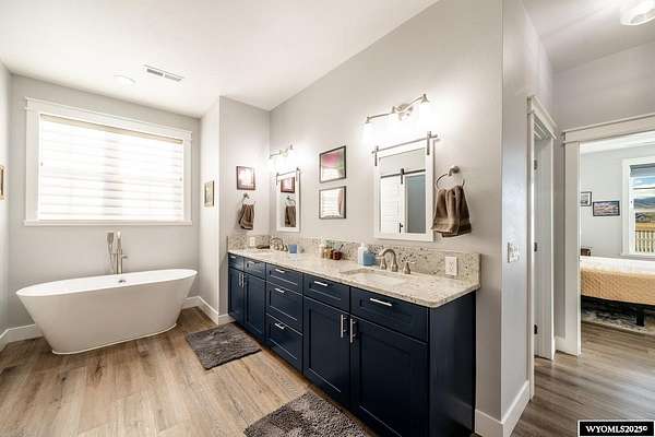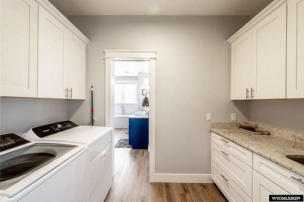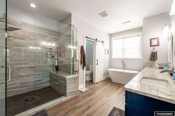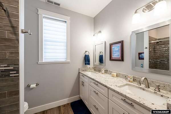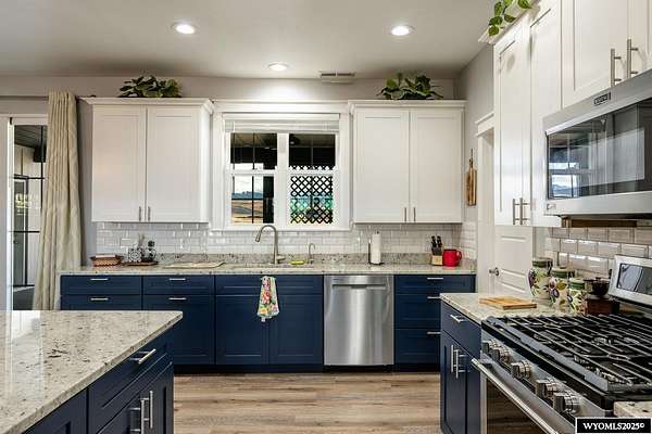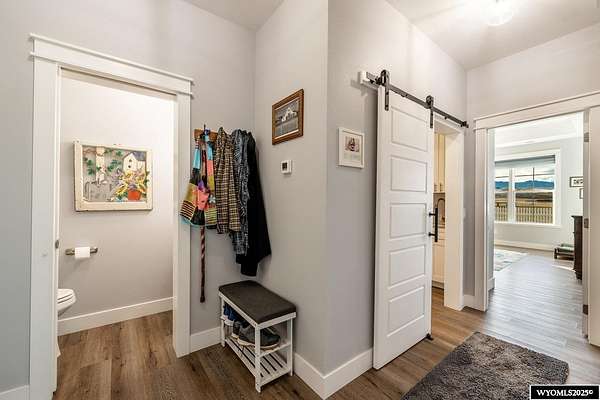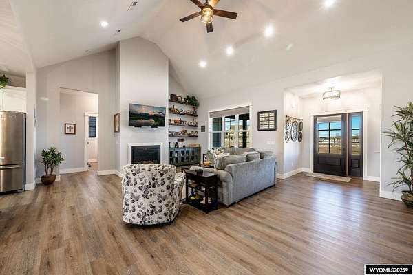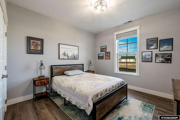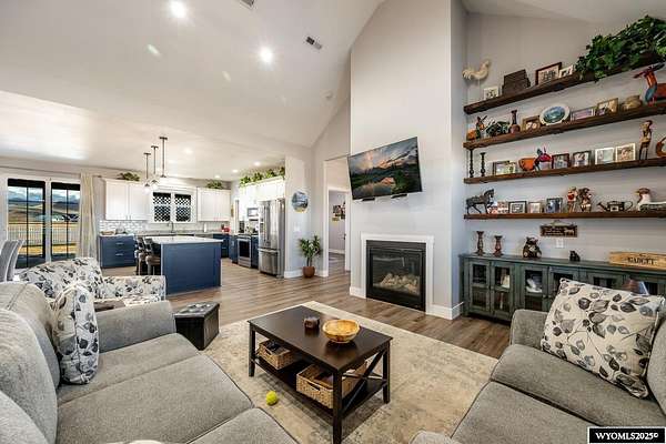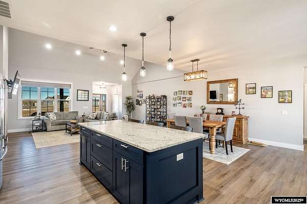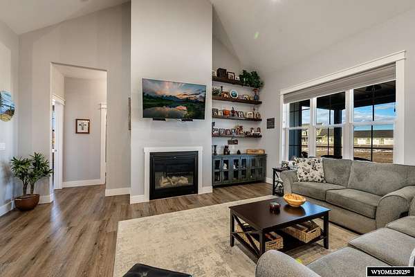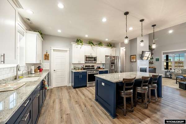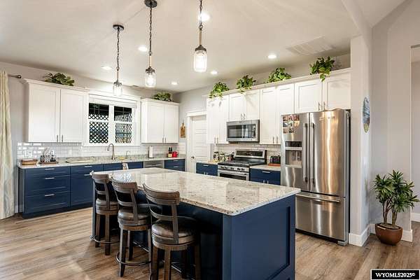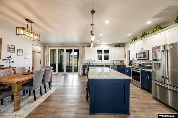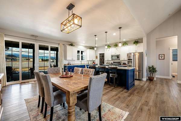 Discover this stunning ranch-style home featuring three bedrooms and 2.5 baths, perfectly situated on a spacious 2.36- acre corner lot. Enjoy breathtaking mountain views from the comfort of your living room, complete with vaulted ceilings and an open floor plan that enhances the spacious feel. The cabinets throughout the entire house are solid wood. The property includes a primary bedroom suite with a large bath and storage in the toilet room, a cozy gas fireplace, a fenced yard, and a separate barn with water and power for horses or hobbies. Spacious laundry room with utility sink, cabinets, and granite counter tops. Additionally you'll benefit from a heated three-car attached garage. This is a perfect blend of comfort and tranquility where you can experience country living just minutes from town. Call Cristy Kinghorn today for your personal tour at 307-620-0037.