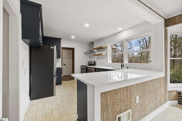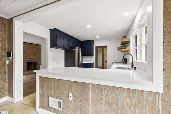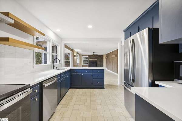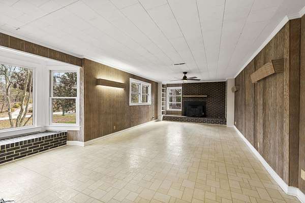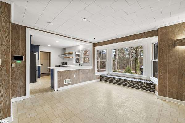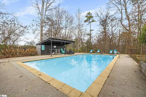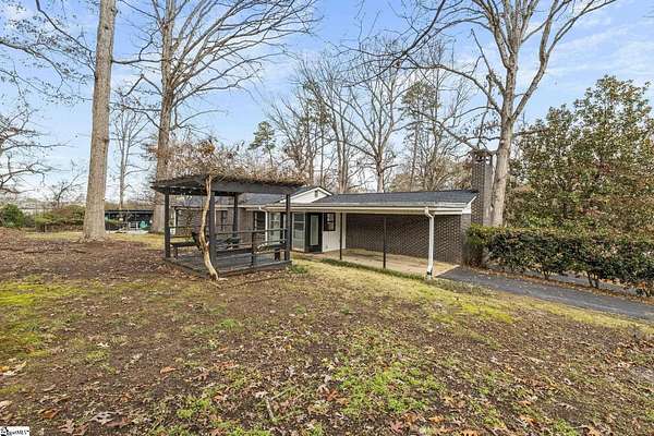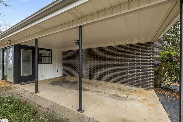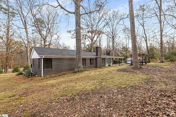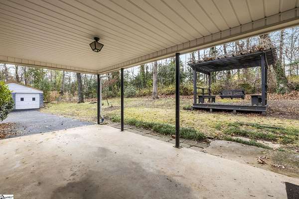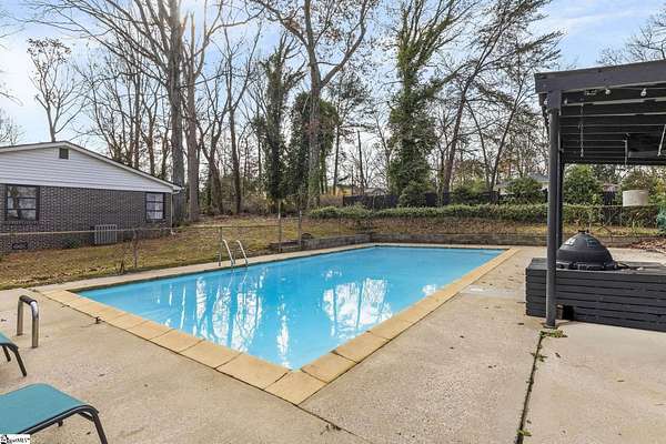 Private, one-level living at its finest! This all-brick ranch sits on 2.2 private acres and features an inviting inground pool, plenty of outdoor living space, and a flexible one-level floor plan. Inside, you'll find an expansive open-concept great room with a charming brick accent wall, wood-burning stove, and built-in bookcases--the perfect backdrop for everyday living or hosting gatherings. The sunny breakfast area with a bay window and window seat flows into the renovated kitchen, complete with quartz countertops, tile backsplash, bar seating, a deep sink, and a full stainless-steel appliance package, including a range hood. Off the kitchen is a versatile flex room ideal for a formal dining room, cozy den, or home office. A second wood-burning fireplace and a wall of built-ins add warmth and character. Two secondary bedrooms share a hall bath, while the primary suite offers a private renovated bath featuring oversized tile flooring, furniture-style vanity, and a tub/shower combo. The large laundry room provides easy access to both the carport and the backyard and features a built in bench with storage for backpacks, umbrellas and shoes. Outdoor living shines with privacy, space, and multiple entertaining areas. Parking is abundant with a one-car attached carport, extra parking pads, and a detached two-car garage with yard door--also perfect for a workshop. Enjoy evenings under the pergola with swing, ideal for after-dinner drinks, quiet date nights, or time with the kids. The inground pool includes ample patio space and a pool house with half bath, changing rooms, and storage. Located within walking distance to Mitchell Road Elementary and less than 10 minutes to interstate access, shopping, dining, and top-tier medical facilities. Welcome Home!