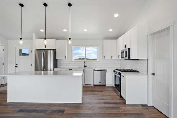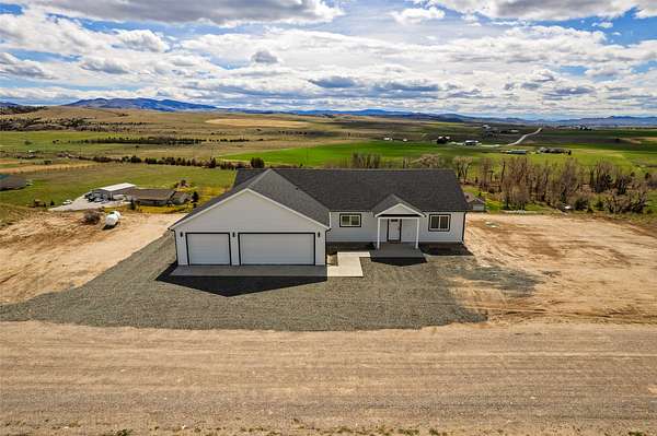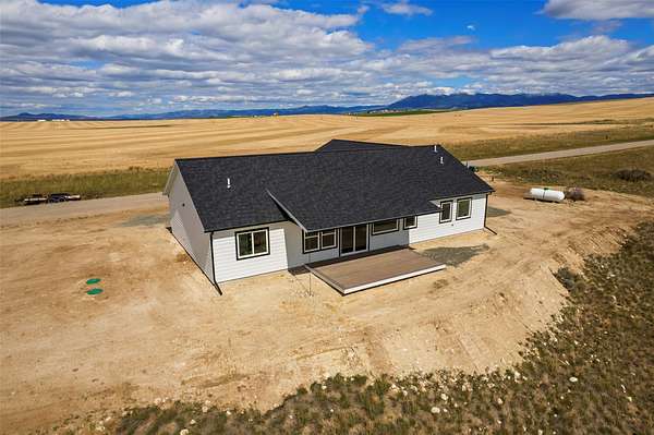 This brand-new 3 bedroom, 2 bathroom home offers 1,755 sq ft of single-level living with sweeping mountain views and open Montana horizons. The open-concept layout features quartz countertops, modern finishes, and expansive windows that fill the space with natural light. Step outside to a 192 sq ft covered back porch and a 12x24 Trex deck, perfect for relaxing or entertaining while enjoying the views. The attached 3-car garage provides approximately 800 sq ft for vehicles, storage, and recreational gear. Located near Canyon Ferry Lake with convenient access to Townsend this home delivers space, comfort, and Big Sky living in one exceptional setting. New construction. Big views. Room to breathe.