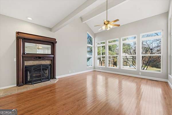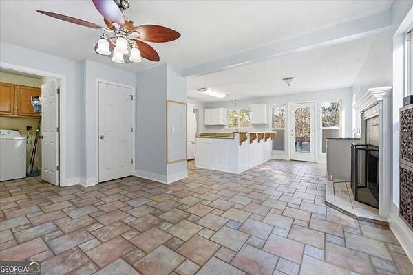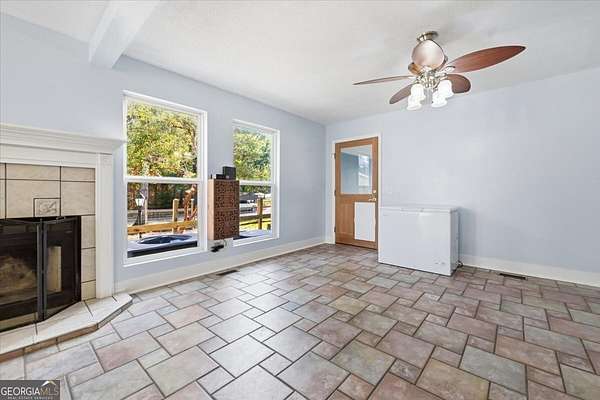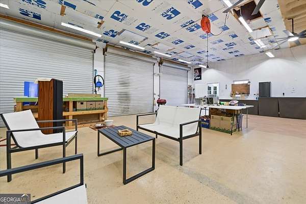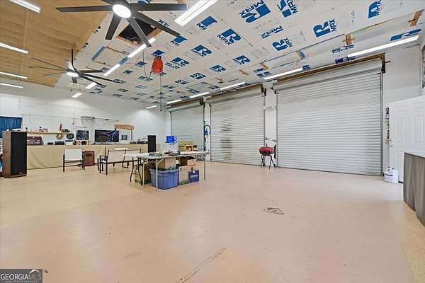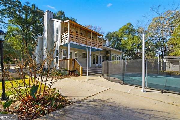 Exceptional value in a prime location! This spacious 6-bedroom, 3.5-bath home offers 3,237 sq ft of heated/cooled living space, an attached 2-car garage, and a new 2025 roof. Fresh interior paint highlights the large living room with hardwood floors, floor-to-ceiling windows, and a fireplace that flows into an open dining area. The kitchen features granite countertops, abundant natural light, tiled floors, a laundry room, and an inviting keeping room with a second fireplace. A main-level bedroom/office with two closets adds flexibility. Upstairs, the primary suite includes a walk-in closet, full-wall wardrobe, and private covered balcony overlooking the pool. Two additional bedrooms share a full bath, plus bonus storage ideal for a playroom or hobby space. Step outside to your resort-style saltwater pool, complete with a newer heavy-duty liner, updated equipment, safety fence, and weekly service plan. The pool pavilion features a bathroom, slate flooring, new fixtures, hot water tank, ceiling fans, and streaming-ready entertainment-ideal for year-round gatherings. Above the pavilion is a private 2-bedroom apartment with a kitchenette, perfect for multigenerational living, rental income, or guest accommodations. A major highlight is the 1,600-sq-ft workshop, equipped with epoxy floors, LED lighting, multi-speed ceiling fans, three 10-ft roll-up doors, and an additional 8-ft bay-ideal for contractors, car enthusiasts, or home businesses. A rare multi-use property-schedule your private tour today!