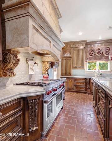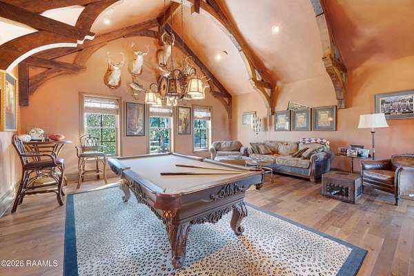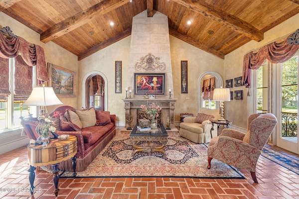 This one has it all! Beautiful custom-built home on two acres with finest finishes and features reminiscent of fine European homes. All quality materials were chosen with great attention to detail. Marble inlaid, real brick and antique pine flooring. Gold leaf, exotic stone surfaces, unique paint treatments lovely porches and balconies. Extra insulation and extra storage areas everywhere. Extra heavy hail resistant roofing. See the Amenities list in our documents. Wonderful floorplan with both a primary and guest bedroom downstairs each with their own private bathrooms! The den and the main bedroom overlook the fabulous pool, patio, and treed backyard. The gourmet kitchen includes a 48'' Wolf range, two warming drawers, large Sub-zero refrigerator, butler's pantry with ice machine. There is a lovely half bathroom for guests. Outside of our bathroom count there is a separate half bathroom for the pool and another half bathroom in the game room! The 600 foot game room over the garage has a kitchenette and a billiard table that can stay. The game room is not included in the living area. Outside is a beautiful heated pool with a spa like hot tub, fountains, oak trees, sprinkler system, outdoor lighting and FULL house generator!