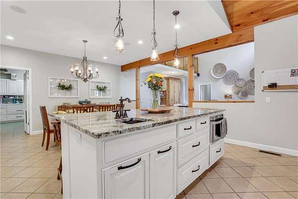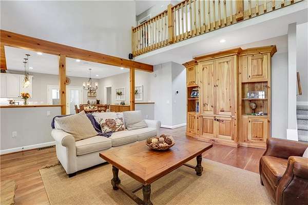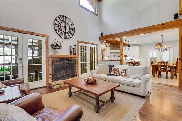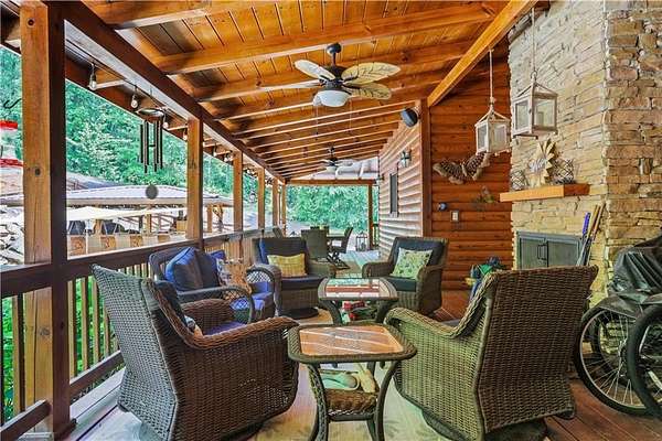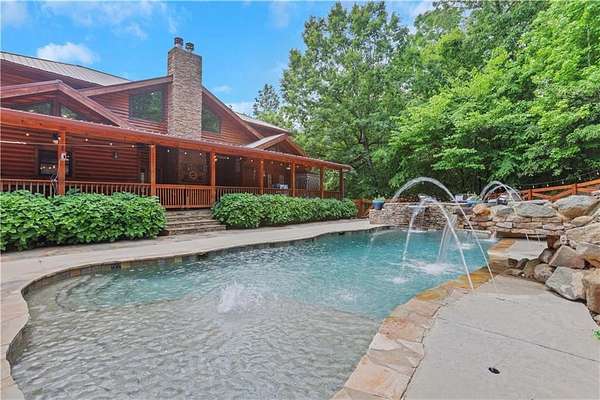 Unwind in your very own private resort-style, mountainside sanctuary. Discover the ultimate escape with this stunning 4 bedroom, 3.5 bath home. Nestled on 6+ acres of secluded, picturesque land. This is not just a home, but a private retreat that seamlessly blends rustic elegance with modern luxuries. The backyard oasis includes a sparkling saltwater pool, hot-tub, and slide with plenty of seating areas for entertaining. The outdoor kitchen includes a brick oven pizza stove. The back deck is spacious and the wood burning fireplace brings a level of comfort 2nd to none. Expansion potential: the property includes an adjacent lot with a separate water meter offering endless possibilities (family compound, barn, workshop, etc.) Step into a bright, open interior featuring wood beam ceiling, a gourmet kitchen, open concept. Basement is finished and continues the entertaining possibilities.