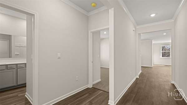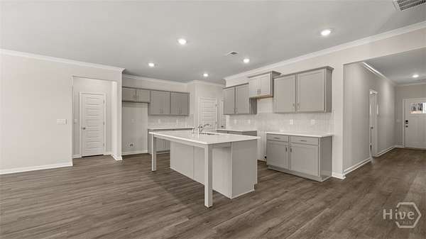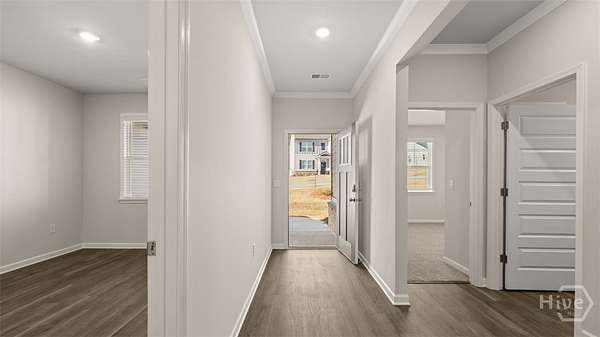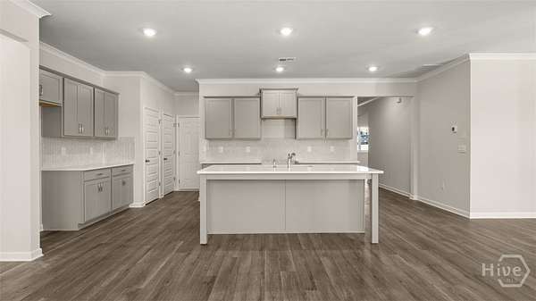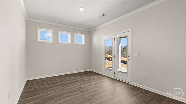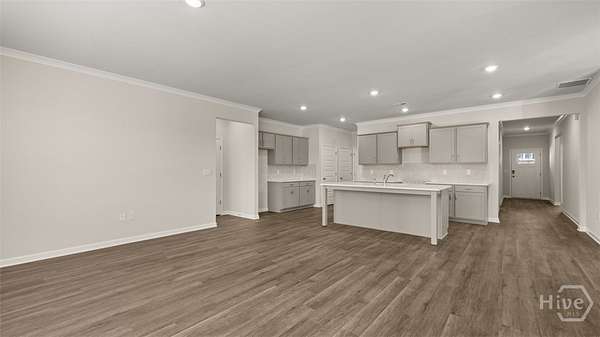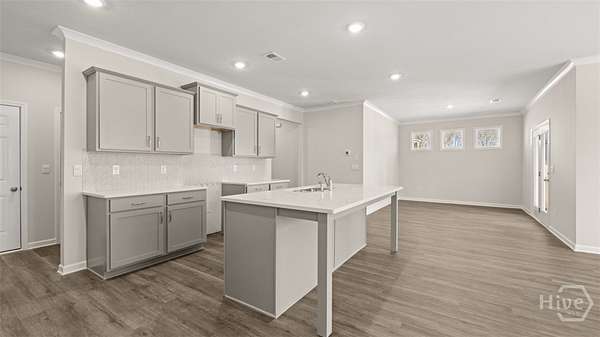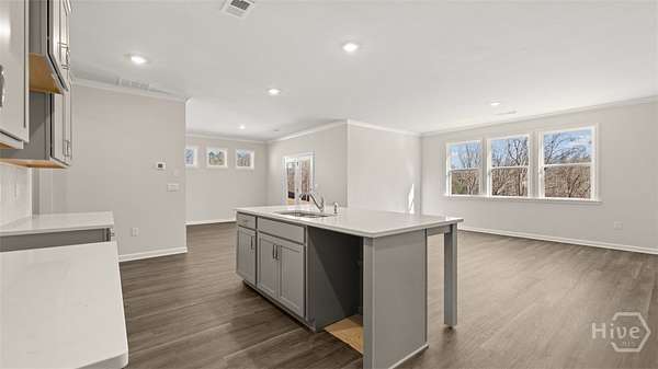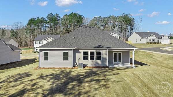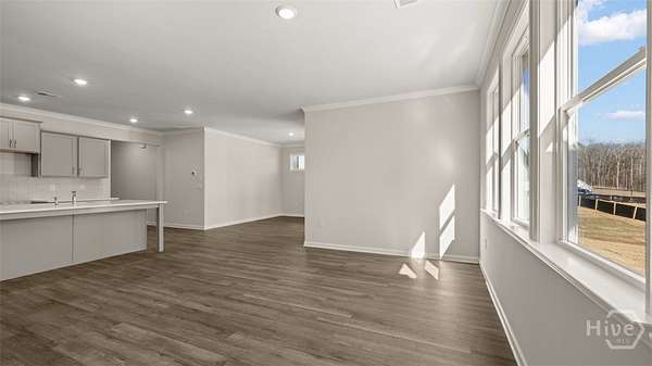 This Grover floorplan at Kingston Ranch at Lake Oconee has 4 bedrooms and 2 bathrooms offering 2103 sq. ft. in a thoughtfully designed single-story layout. With an open concept design, this home blends functionality and style for comfortable everyday living. The spacious kitchen features stainless steel appliances and quartz countertops, combining modern style with everyday convenience. It opens to the bright living room and cozy nook area, creating a seamless flow that's perfect for family gatherings and entertaining. A covered back porch extends your living space outdoors-ideal for morning coffee or evening relaxation. The private primary suite is located at the rear of the home, offering a peaceful retreat with an ensuite bath and generous closet space. Three secondary bedrooms are positioned at the front of the home and share a full bath, making this layout perfect for families or guests. Photos are for illustrative purposes only and may not depict the actual home.
