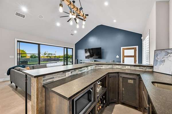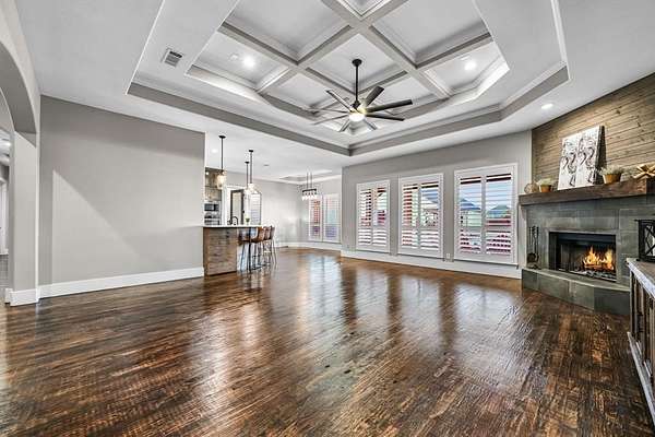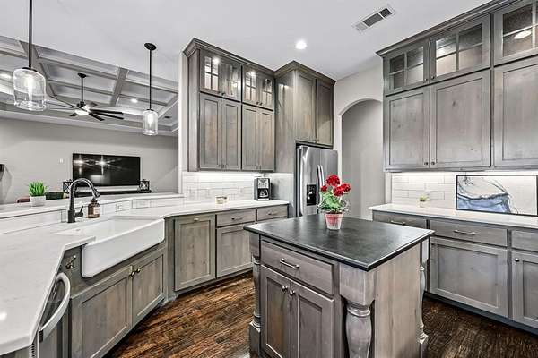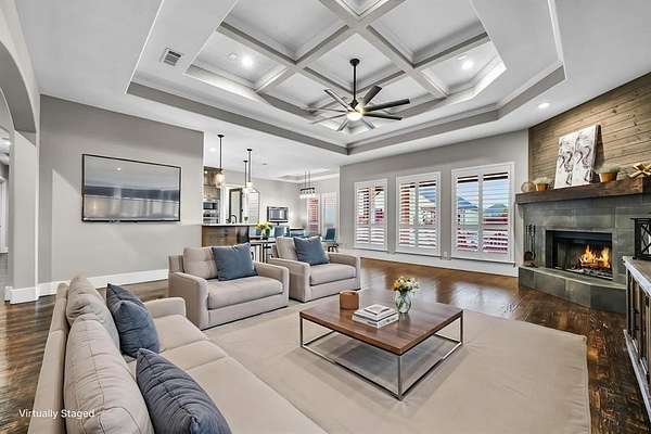 Designed with both comfort and sophistication in mind, the home features four spacious garages, offering ample room for vehicles, storage, and hobbies. Inside, a beautifully appointed chef’s kitchen showcases high-end appliances, expansive countertops, and custom cabinetry, making it ideal for both everyday living and effortless entertaining. With no carpet throughout, the home offers a clean, modern aesthetic and easy maintenance.