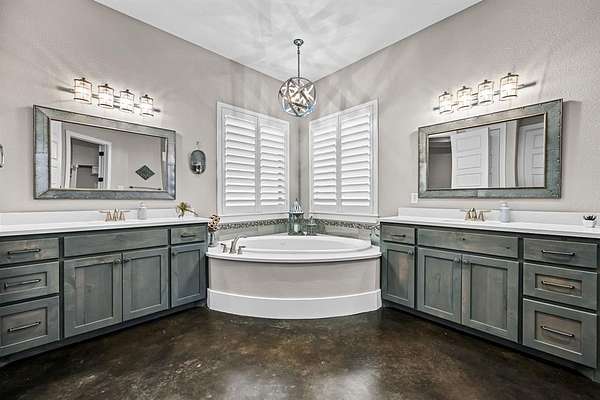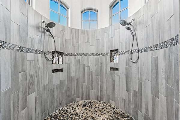 The private primary suite is a true retreat, thoughtfully separated for maximum privacy and comfort. The spa-like primary bathroom offers a serene escape with luxurious finishes, while the expansive primary closet provides exceptional storage and boutique-style space.n addition to the primary suite, the home offers three secondary bedrooms, including one with a private en-suite bath, while the remaining two are connected by a Jack-and-Jill bathroom, providing both comfort and functionality. A dedicated home office and oversized laundry room add to the home’s thoughtful layout. So many designer touches throughout the home.