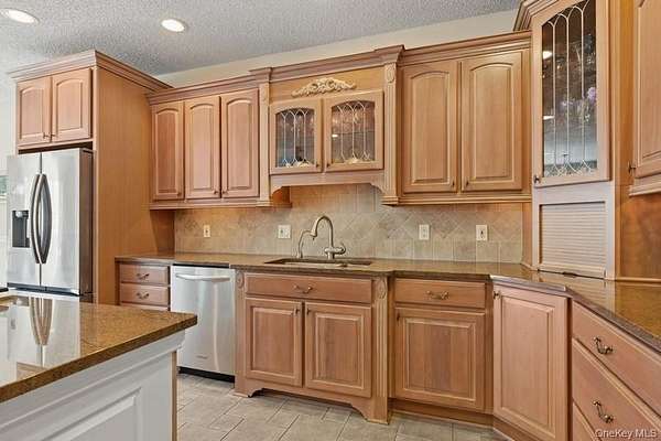 - Cathedral Ceiling(s), Central Vacuum, Eat-In Kitchen, Entrance Foyer, First Floor Bedroom, First Floor Full Bath, Formal Dining, Granite Counters, High Ceilings, Kitchen Island, Marble Counters, Master Downstairs, Natural Woodwork, Open Floorplan, Primary Bathroom, Soaking Tub, Walk-In Closet(s)