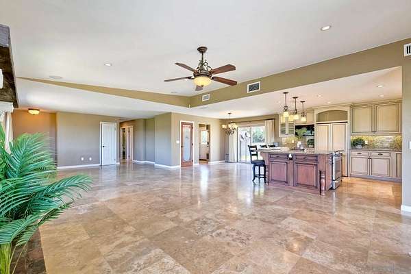AVOCADO GROVE HIDEAWAY! SINGLE-LEVEL CUSTOM RESIDENCE sits high on a hill, with SWEEPING PANORAMIC VIEWS of 500+ AVOCADO TREES. The expansive GREAT ROOM is designed for gatherings, featuring DUAL-PANED WINDOWS, TRAVERTINE FLOORING, an OVERSIZED ISLAND, and a CHEF'S KITCHEN with CUSTOM CABINETRY plus PANELED REFRIGERATOR and DISHWASHER. The PRIMARY SUITE offers SERENE ORCHARD VIEWS and a true sense of retreat. A rare chance to own a PRODUCING AVOCADO GROVE paired with a VIEW-FILLED HOME, the perfect blend of COUNTRY LIVING and COMFORT!