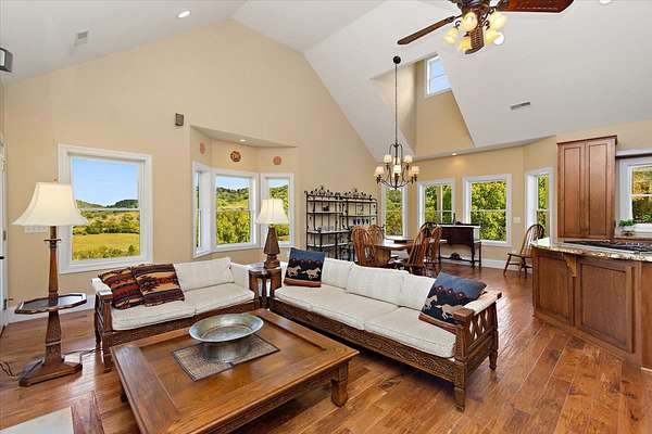 Perched atop a hill with commanding views of the valley below, this exceptional single-story home offers privacy, tranquility and breathtaking natural beauty across more than 30 acres of mature trees and uninterrupted vistas. This property is a rare blend of rustic charm and refined elegance.