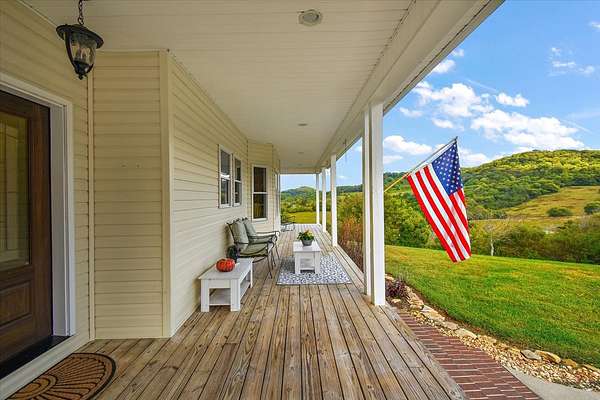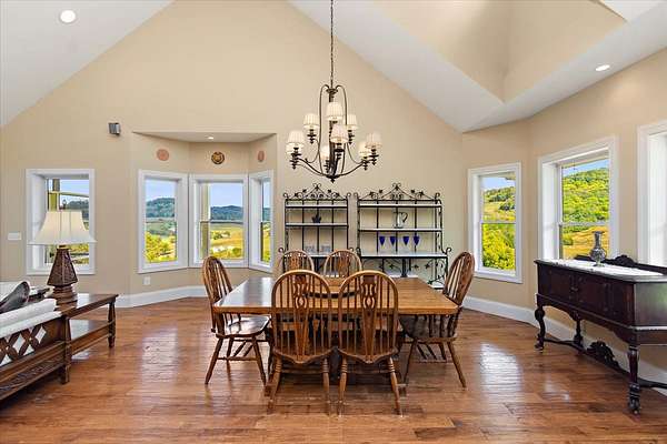 Outside, the property includes a detached oversized garage with built-in workbench and a versatile metal outbuilding--perfect for equipment or use as a work shop. The grounds offer abundant opportunities for outdoor living, including a screened in porch, a garden area, fruit trees, a chicken coop and hunting potential. From sunrise to sunset, watch nature unfold all around this remarkable property. Whether you're in search of a tranquil retreat or a place to entertain and explore, this hilltop haven delivers the perfect blend of peace and possibility.