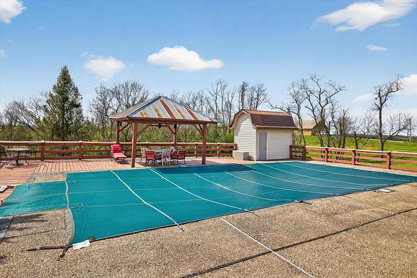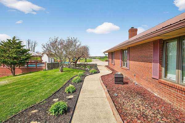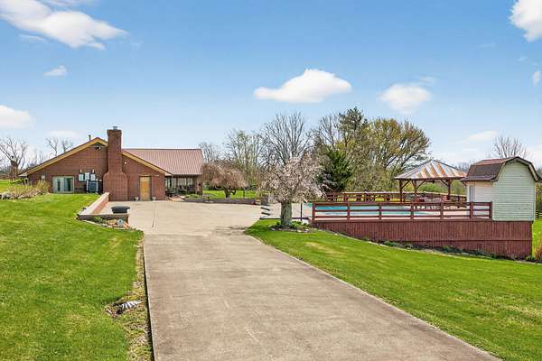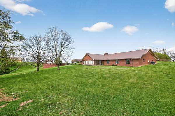 Stop scrolling! This is the one you've been looking for. Welcome to 1070 Jacks Creek Rd in Richmond. Located just 3 miles from I75 and 6 miles from Downtown Richmond this mini farm offers the convenience of location and the seclusion of country life. Situated on 6.62 acres this property offers a lovingly maintained 4600 sqft brick ranch home, a large barn, fenced area for animals, a small oval paddock perfect for horses, an inground pool with its own equipment shed, and so much more. The barn is set up as a great workspace and storage area with concrete floor and a separate enclosed area for parking boats, atv's, or farm equipment. The beautiful earth sheltered ranch is built just slightly into the rolling hill providing an enhanced level of efficiency in terms of heating, cooling, and sound proofing, as well as offering stunning views of the the surrounding countryside to the southeast. Inside you're sure to be impressed with all this home has to offer from its large sunken great room with wood burning stove, to the oversized and recently updated kitchen/dining room, both sharing a stone feature wall and centrally located as the real heart of the home. The kitchen features tons of cabinetry, quartz countertops, a large island with cooktop and seating, skylights, in addition to double ovens and an indoor wood oven/grill in the stone wall. Down the hall to the right you,ll find a primary suite with its own bath, 3 additional guest rooms, a guest bath, and the homes laundry room equipped to accommodate 2 sets of washers and dryers and tons of hanging and storage. To the left there is another primary suite with it's own bath, 2 more guest rooms and guest bath, and a second entertaining/family room with a gas log fireplace. All seven bedrooms offer lots of square footage and include huge closets. The front porch doubles as a 3 seasons sunroom complete with glass sliding doors and tile floors offering a great place to lounge and watch tv or take in the views. If you've been looking for a property with a little space for farming or hobbies and no restrictions from an hoa then you are going to want to check this one out.