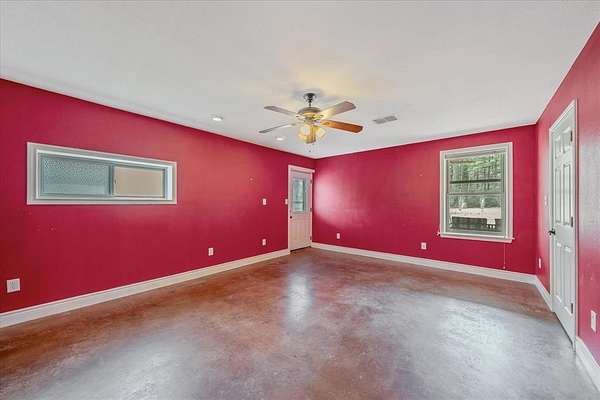 Welcome to your private Orchard and Enchanted forest on 63 plus acres of beautiful East Texas countryside. Mature and exotic trees surround this peaceful property, with cross-fencing for cattle or horses and a small barn for Horses. The barndominium sits on a 4,000 sq ft concrete pad and offers approximately 1,800 sq ft of living space plus a 40x50 barn with workshop.