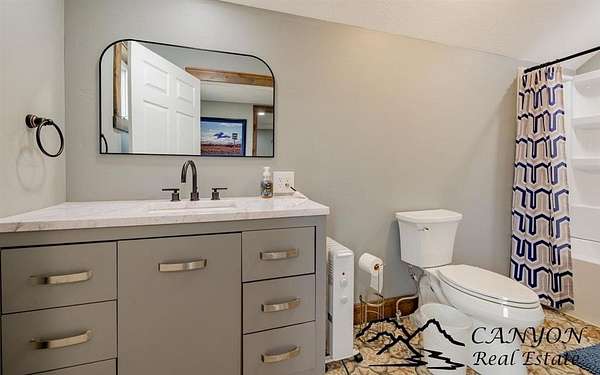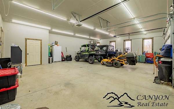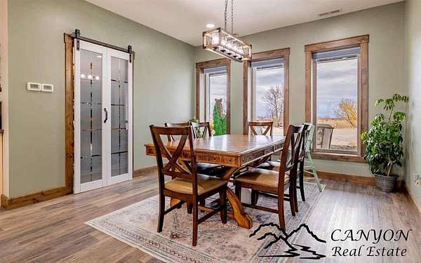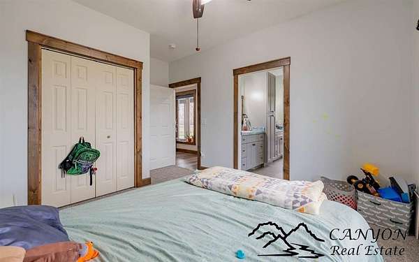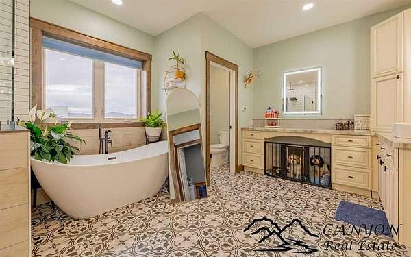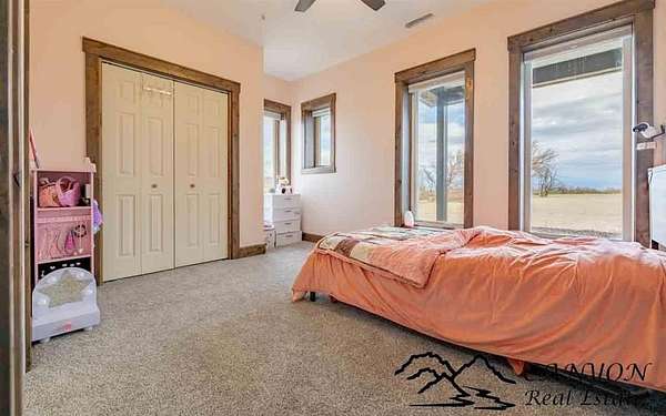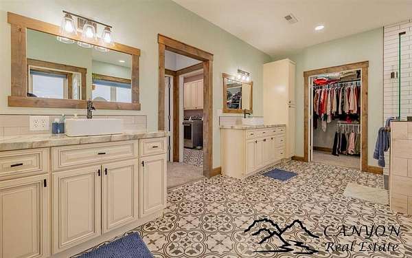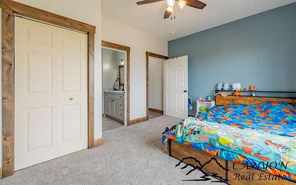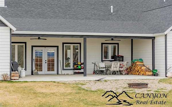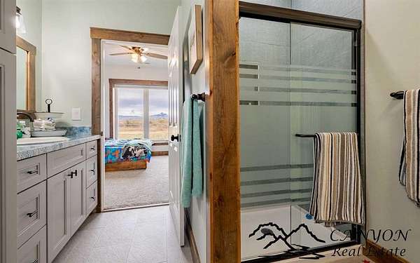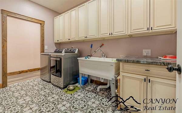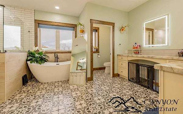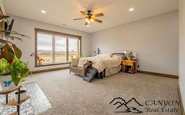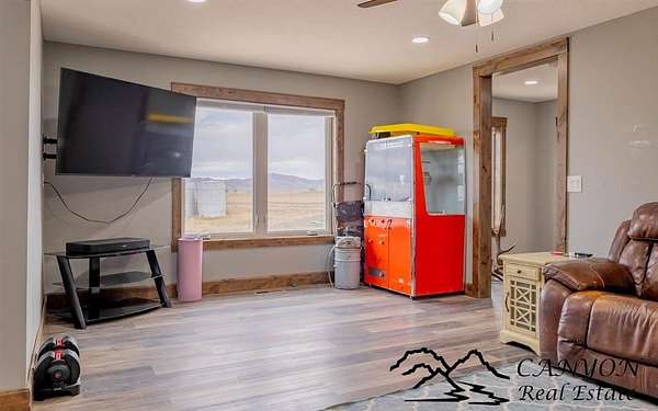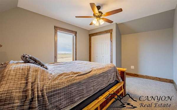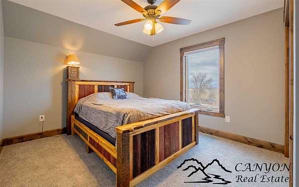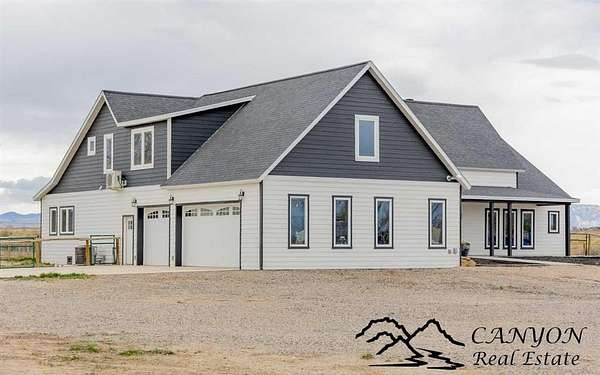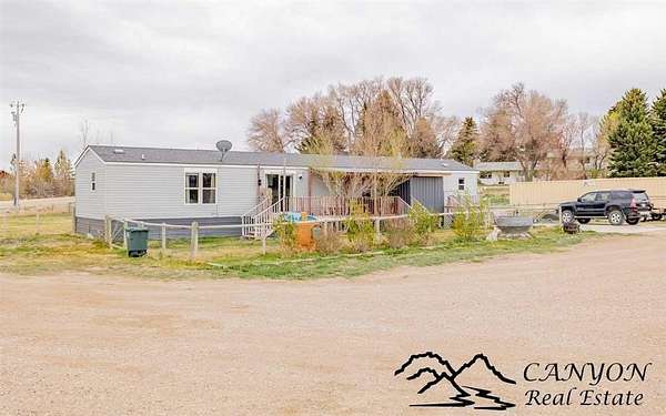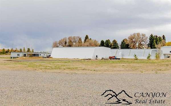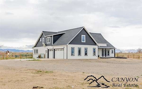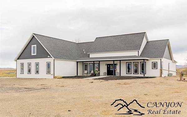 Experience the best of Wyoming living with creek frontage, a custom-built home, guest house, and expansive shop space on 18.67 acres. Approximately ¼ mile of Alkali Creek forms the northern boundary, offering a rare opportunity to enjoy your own private stretch of water. With no HOA or covenants, the property allows flexibility for livestock, recreation, or country living. The custom 3,668 sq ft home features 5 bedrooms and 5 bathrooms, designed with open-concept living, high ceilings, and quality finishes throughout. LVP flooring runs through the main living areas, anchored by a striking floor-to-ceiling rock fireplace showcasing a custom Heart Mountain outline. Comfort and efficiency are prioritized with in-floor heat, forced air, central air conditioning, and an on-demand water heater. The spacious primary suite includes a walk-in shower, double closets, and direct patio access. An upstairs bonus room provides flexible living space while a finished, heated 3-car garage completes the home. A fully refurbished 3-bedroom, 2-bath guest home offers excellent potential for rental income, guests, or multigenerational living. Two large quonset buildings (40x80 and 50x100) with concrete floors provide exceptional storage and workshop space. Creek frontage, usable acreage, and extensive improvements combine to create a property that blends Wyoming lifestyle, functionality, and investment potential.