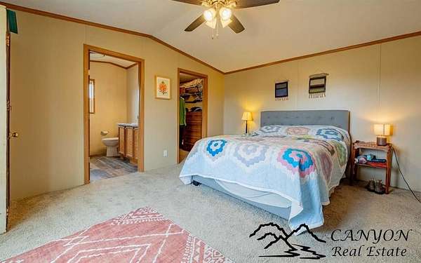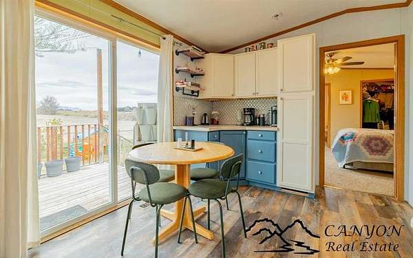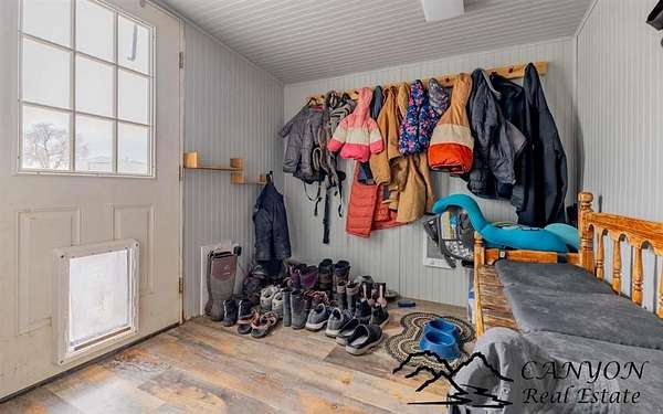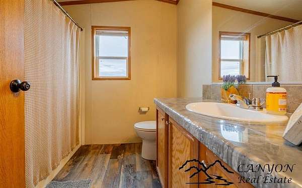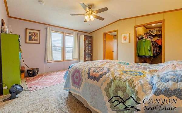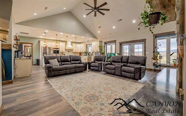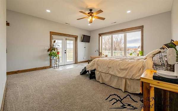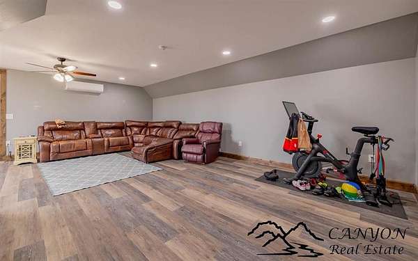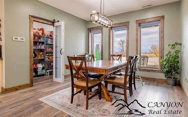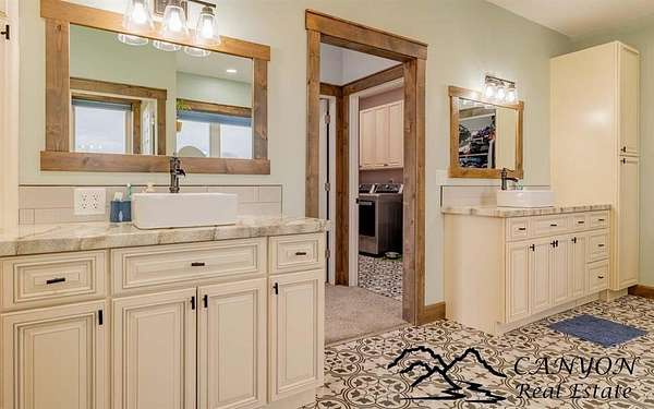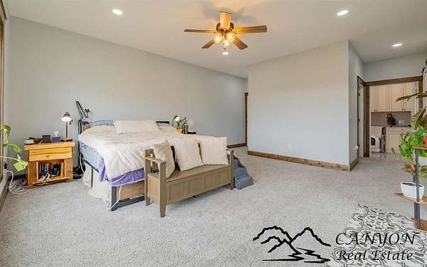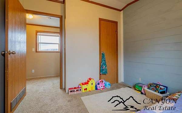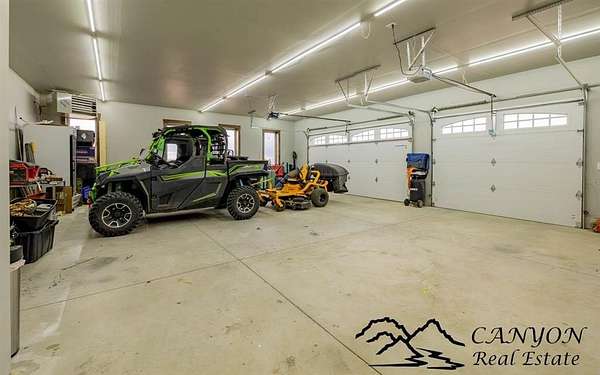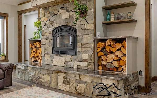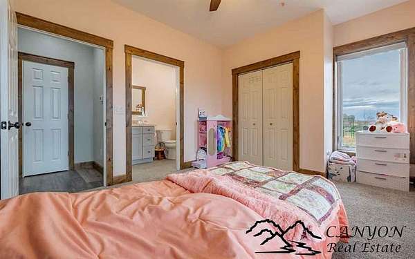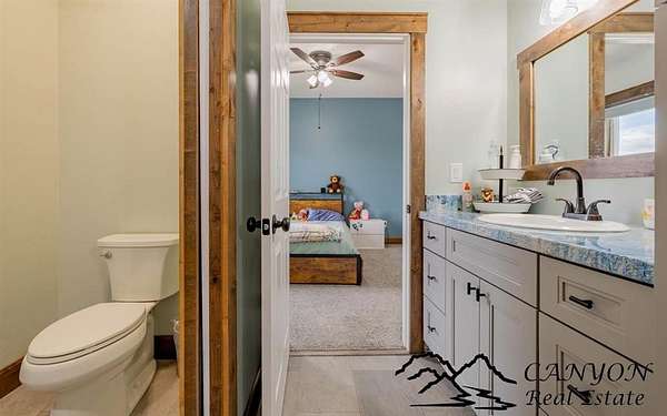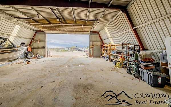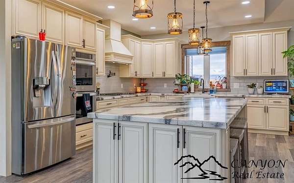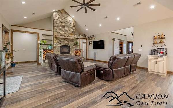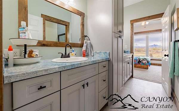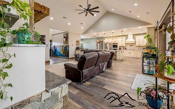 Experience the best of Wyoming living with creek frontage, a custom-built home, guest house, and expansive shop space on 18.67 acres. Approximately ¼ mile of Alkali Creek forms the northern boundary, offering a rare opportunity to enjoy your own private stretch of water. With no HOA or covenants, the property allows flexibility for livestock, recreation, or country living. The custom 3,668 sq ft home features 5 bedrooms and 5 bathrooms, designed with open-concept living, high ceilings, and quality finishes throughout. LVP flooring runs through the main living areas, anchored by a striking floor-to-ceiling rock fireplace showcasing a custom Heart Mountain outline. Comfort and efficiency are prioritized with in-floor heat, forced air, central air conditioning, and an on-demand water heater. The spacious primary suite includes a walk-in shower, double closets, and direct patio access. An upstairs bonus room provides flexible living space while a finished, heated 3-car garage completes the home. A fully refurbished 3-bedroom, 2-bath guest home offers excellent potential for rental income, guests, or multigenerational living. Two large quonset buildings (40x80 and 50x100) with concrete floors provide exceptional storage and workshop space. Creek frontage, usable acreage, and extensive improvements combine to create a property that blends Wyoming lifestyle, functionality, and investment potential.