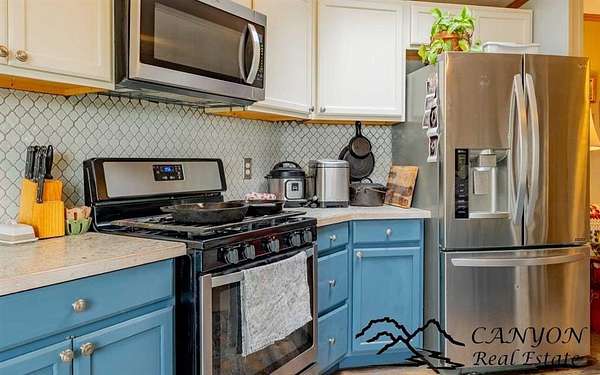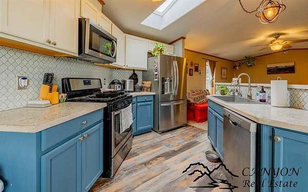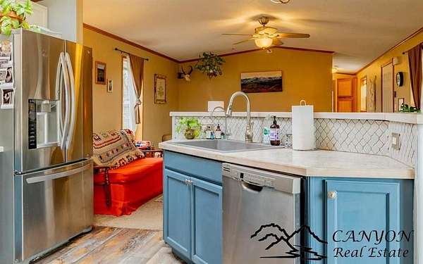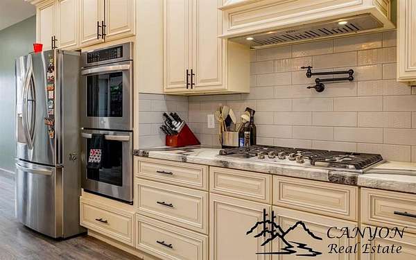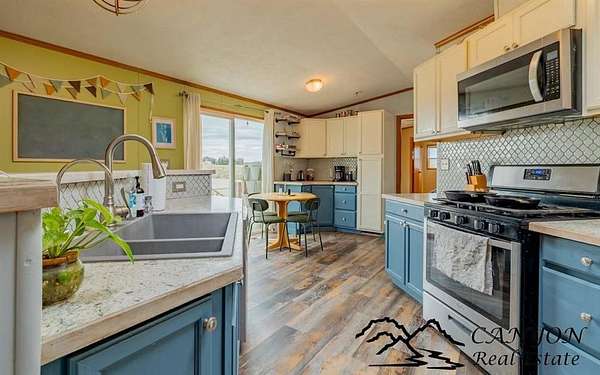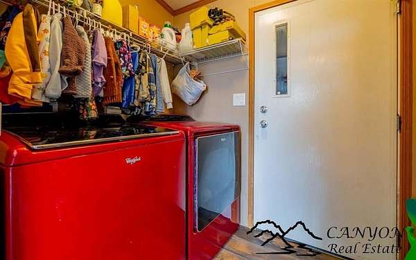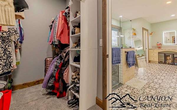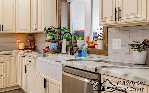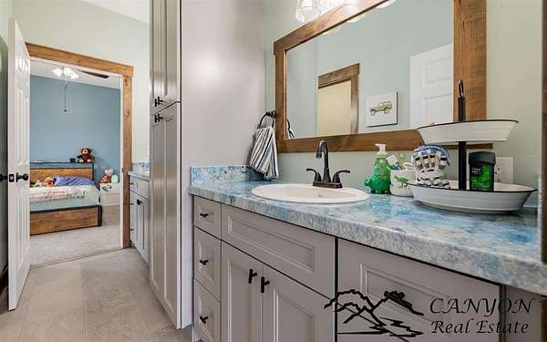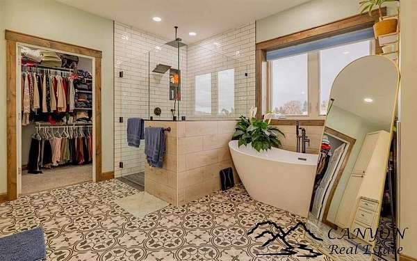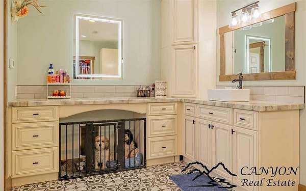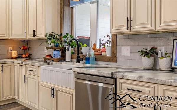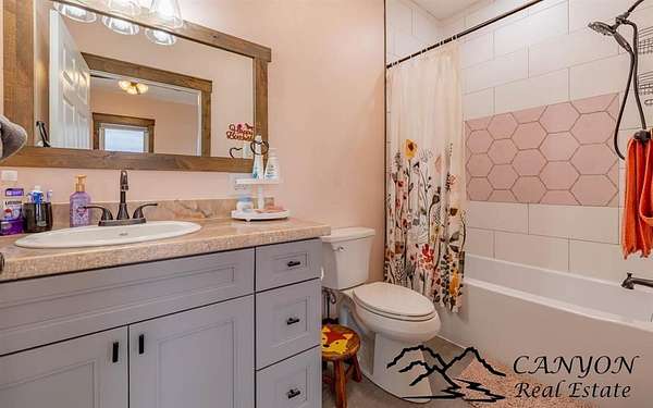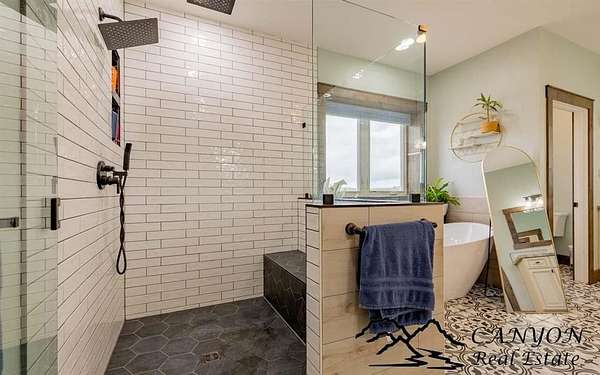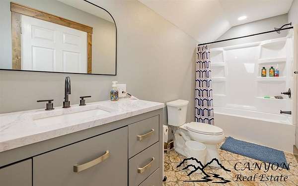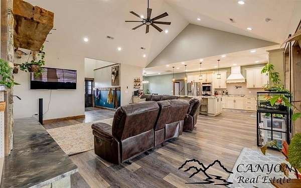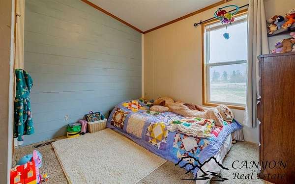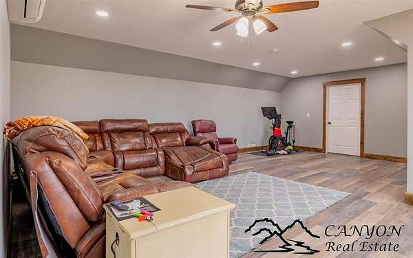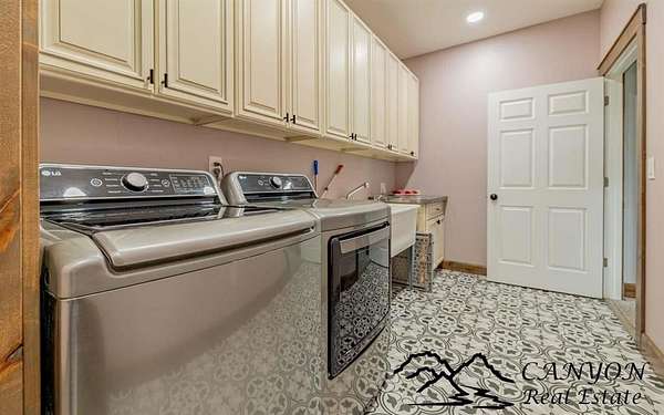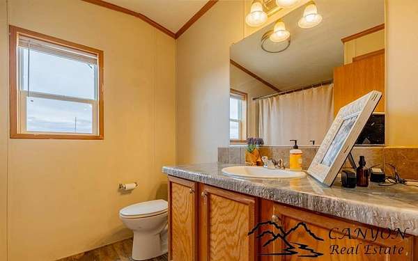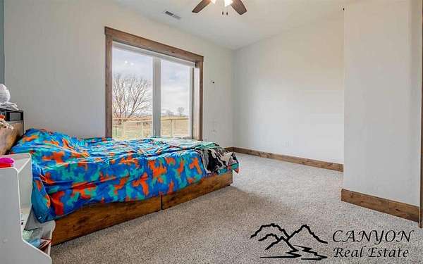 Experience the best of Wyoming living with creek frontage, a custom-built home, guest house, and expansive shop space on 18.67 acres. Approximately ¼ mile of Alkali Creek forms the northern boundary, offering a rare opportunity to enjoy your own private stretch of water. With no HOA or covenants, the property allows flexibility for livestock, recreation, or country living. The custom 3,668 sq ft home features 5 bedrooms and 5 bathrooms, designed with open-concept living, high ceilings, and quality finishes throughout. LVP flooring runs through the main living areas, anchored by a striking floor-to-ceiling rock fireplace showcasing a custom Heart Mountain outline. Comfort and efficiency are prioritized with in-floor heat, forced air, central air conditioning, and an on-demand water heater. The spacious primary suite includes a walk-in shower, double closets, and direct patio access. An upstairs bonus room provides flexible living space while a finished, heated 3-car garage completes the home. A fully refurbished 3-bedroom, 2-bath guest home offers excellent potential for rental income, guests, or multigenerational living. Two large quonset buildings (40x80 and 50x100) with concrete floors provide exceptional storage and workshop space. Creek frontage, usable acreage, and extensive improvements combine to create a property that blends Wyoming lifestyle, functionality, and investment potential.