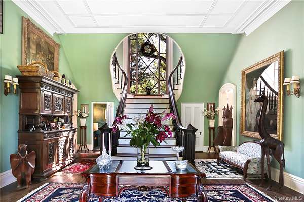 Gothic Revival Country House. Welcome to the Hurst-Pierrepont Estate. This Gothic beauty, situated in the picturesque Hudson Valley is truly a one of a kind offering. The house completed in 1867, designed by Alexander Jackson Davis for Edwards Pierrepont as a country home, sits on almost 20 verdant acres with pool, patio, pond, perennial gardens and specimen trees. Preserving the home's rich history inside, the period features continue throughout. Beginning with the dramatic entrance showcasing the grand, keyhole staircase, the generous public spaces with many fine trim details, paned windows , archways and niches abound. A layout that offers great flow for entertaining as well as many nooks in which to retreat to relax. A slice of country life without being too remote. This hidden sanctuary in the center of Garrison awaits its next owner to enjoy all the history and beauty it has to offer. Privacy without sacrificing convenience. A perfect retreat.