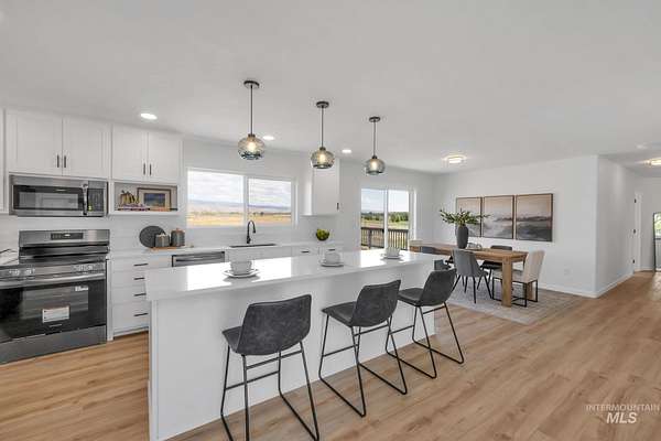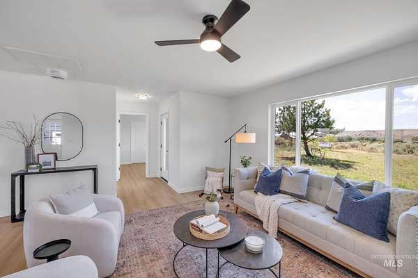 Experience refined country living on approximately 12.85 acres with this newly remodeled 3-bedroom, 3-bath home featuring a detached studio apartment above the garage. Nearly every surface and system has been updated, creating a modern yet inviting interior. Expansive windows fill the open living and dining areas with natural light while showcasing sweeping mountain and valley views. The kitchen features black stainless appliances, a double stainless-steel sink, and a spacious island designed for entertaining. The primary suite offers a walk-in closet and spa-inspired bath, while two additional bedrooms and a full bath provide flexible living space. The detached garage includes a full bath on the lower level and a studio with a kitchenette above--perfect for guests or private quarters. A concrete pad, RV parking, brand-new HVAC (furnace, heat pump, and upstairs mini-split), two parcels, auto-irrigated yard, and an option to purchase an additional 40 adjacent acres with creek frontage complete this property.
